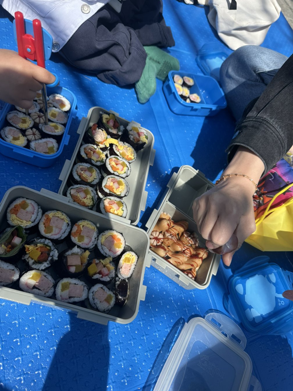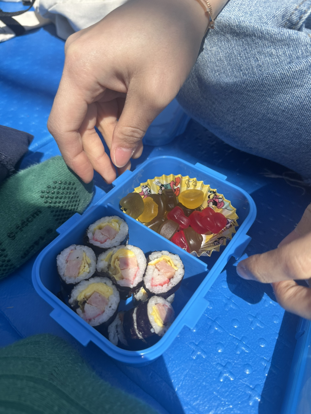 아내가 손수 싼 김밥의 맛은 최고. 시중에 파는 김밥들보다 배는 맛있다. 정성이 들어가서일까? 나보고 많이 먹는다며 혼낸다. 4줄은 족히 먹는다나? 해가 뜨거워서 외투를 벗고 돌아다녔다.
