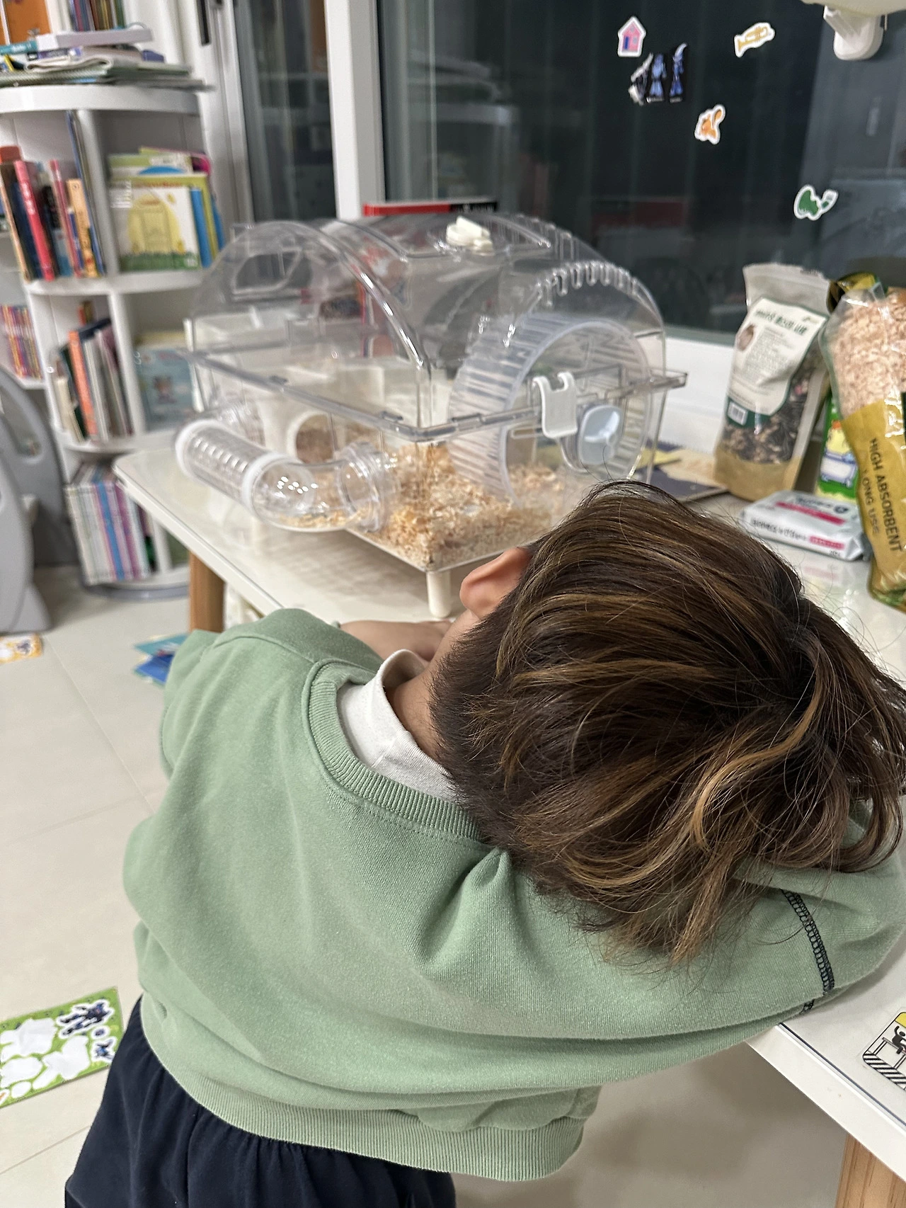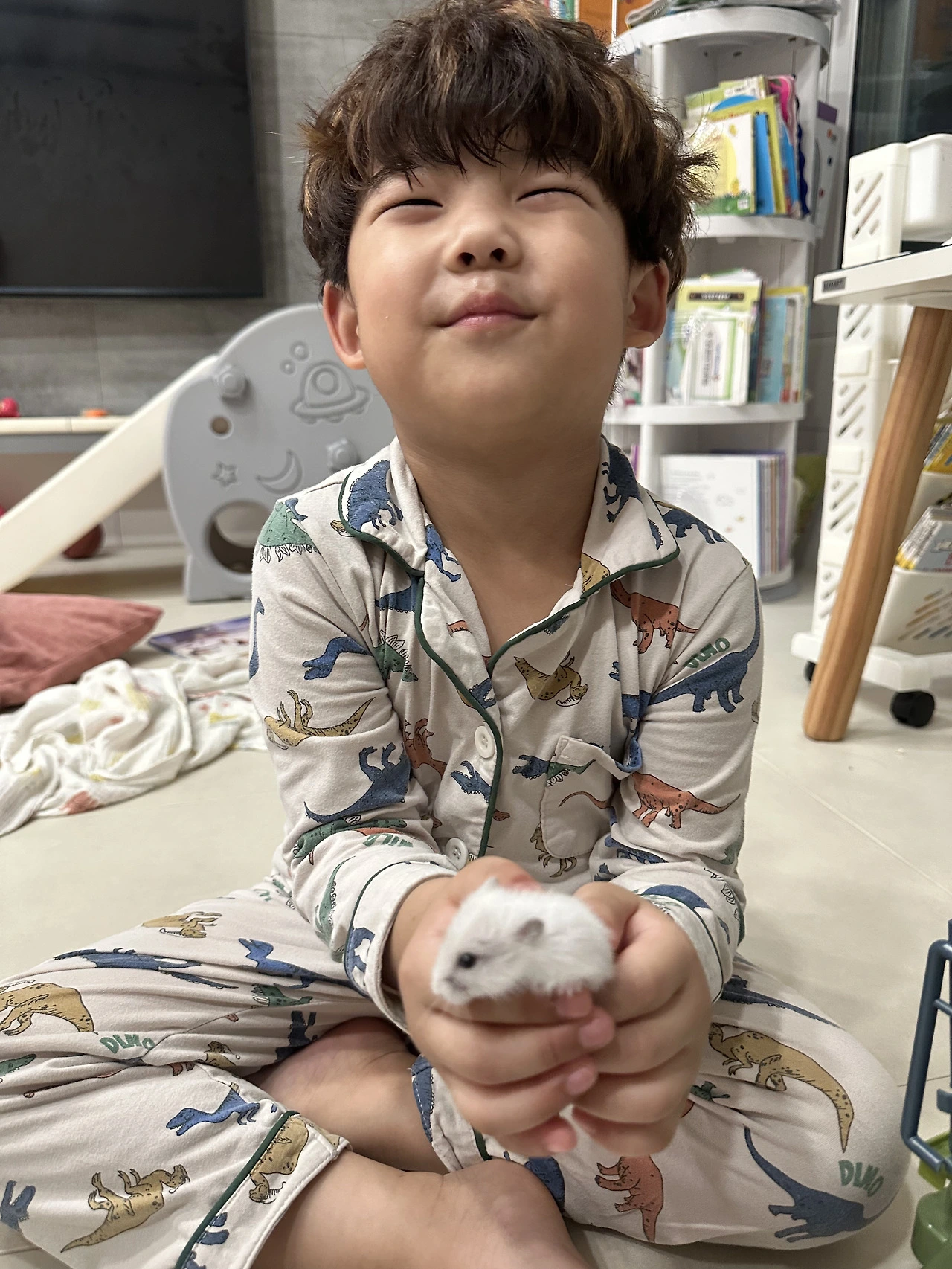 우리 집엔 수많은 친구들이 오고 갔다. 두 아들보다 먼저 온 고양이 토리는 지금도 우리와 함께 잘 지내고 있다. 아내가 일했던 전 직장으로 보내긴 했지만, 거북이 코코와 샤넬 두 친구도 몇 년간 우리와 함께 했었다. 사슴벌레도 1년 넘게 우리와 함께 했었고, 유치원에서 시우가 받아온 달팽이도 있었다. 동물친화적이라곤 할 수 없지만, 많은 친구들이 우리 가족을 찾았다. 그리고 이번엔 햄스터가 온 것이다.