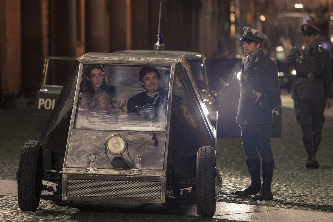조르조가 직접 만든 자동차를 타고 가다가 경찰의 심문을 받는다