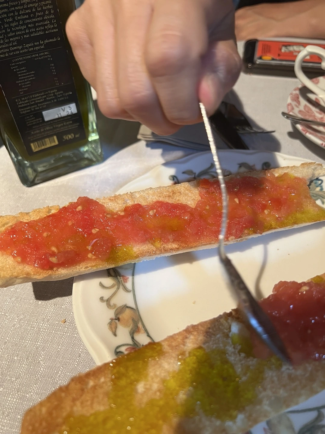 ★ 조리 방식: 곱게 간 토마토, 마늘, 올리브유, 소금을 빵 위에 발라 먹음. 하몽, 앤초비 등 추가 가능