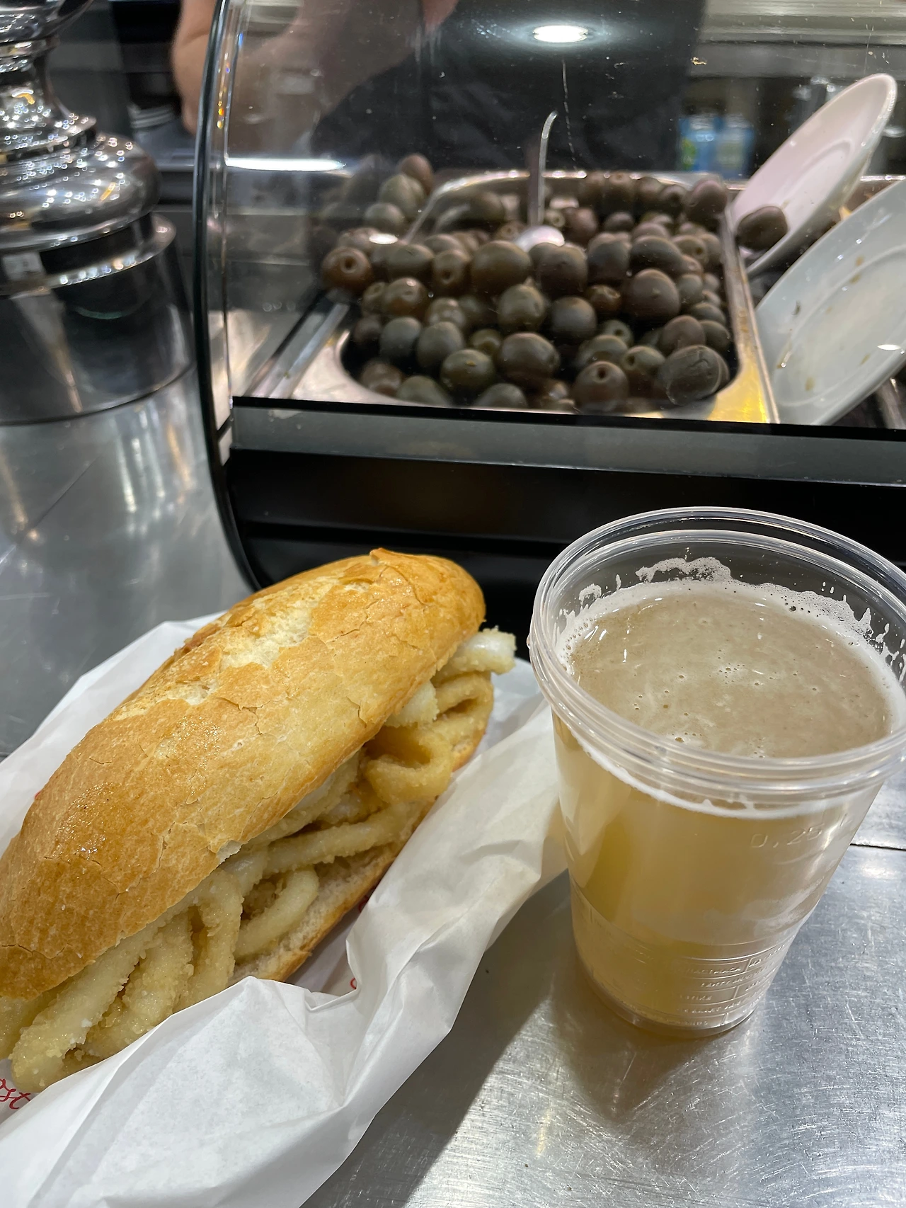 나는 이 오징어 튀김 보까디요를 먹을 때, 스페인의 칵테일 맥주인 '쎄르베싸 끌라라(Cerveza clara)'와 같이 먹으라고 권하고 싶다. 쎄르베싸 끌라라는 맥주에 레모네이드(또는 탄산 레몬 음료)를 섞은 음료이다. 시원하고 상쾌하면서도 달달하고, 가벼운 맛을 보여 퍽퍽하고 느끼할 수 있는 오징어 튀김 샌드위치와 조합이 잘 맞는다. 혹시나 술을 잘 못하는 사람은 쎄르베싸 씬 알콜(Cerveza sin alcohol, 무알콜맥주)도 있으니 같이 즐겨보기 바란다.