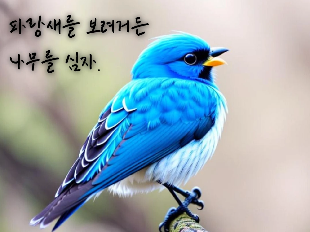 행복의 파랑새를 부르려면 마음의 대지에 나무를 심고 소중하게 가꾸어야 한다. 사랑하는 사람과 함께라면 더욱 좋을 것이다.