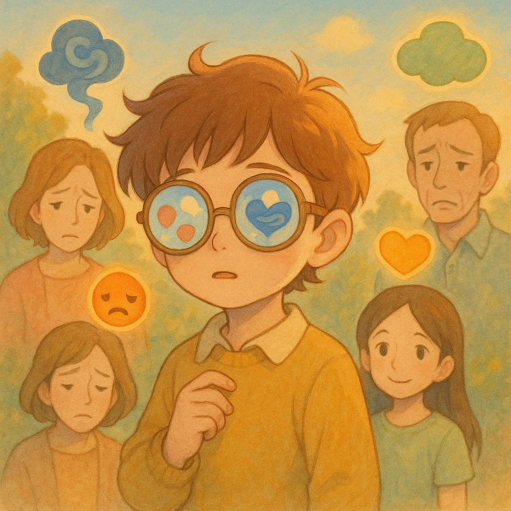 교실에 들어왔을 때 나는 수많은 마음의 소리가 들려서 더 이상 안경을 쓰고 있을 수 없었다. 안경을 벗고 나니 온 세상이 조용해졌다.