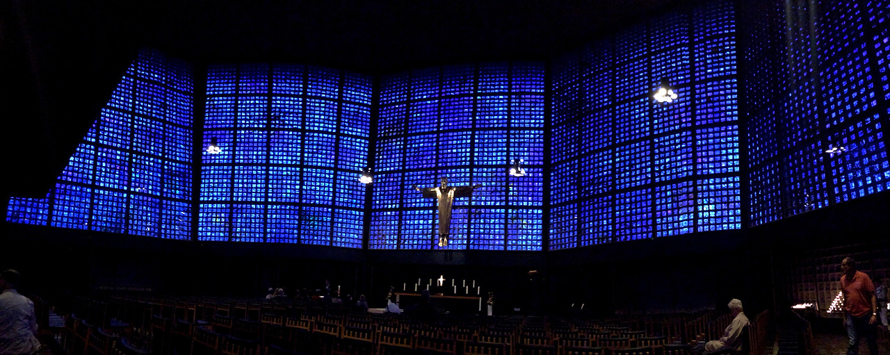 카이저 빌헬름 교회 Kaiser Wilhelm Gedächtniskirche는 평화와 화합의 상징으로 제2차 세계대전의 참혹함을 기억하고 다시는 전쟁을 하지 말자는 의미로 부서진 채로 보수하지 않고 그대로 보존하였으며, ‘썩은 이빨’이라고 불리게 되었다고 한다. 바로 옆에 육각형으로 된 새로운 교회를 지었는데, 내부는 푸른빛을 띠는 스테인드 글라스로 되어 있어 신비롭고 환상적인 느낌을 준다.
