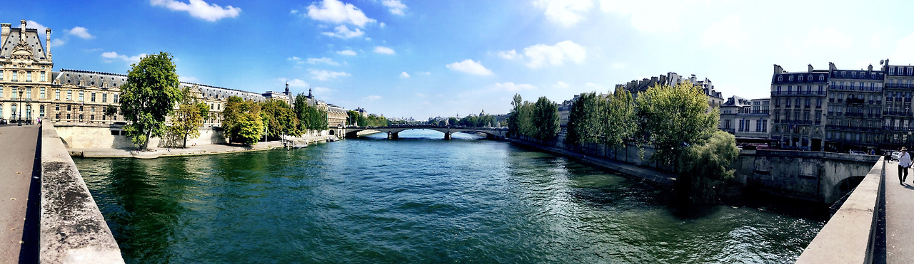 퐁 네프 다리 건너 보이는 곳이 바로 파리의 발상지, 시테 섬 L'île de la Cité 은 센 강이 양쪽으로 갈라진 물 사이에 떠 있는 섬이다. 섬에는 가장 오래된 퐁 네프를 포함해 9개의 다리가 놓여 있고, 다리를 통해 시테섬에서 생루이섬으로, 쉽게 섬과 시내를 이동할 수 있다. 센강이 흐르는 시테섬의 다리 밑에서 한가로이 시간을 보내는 사람들도 많이 보인다.