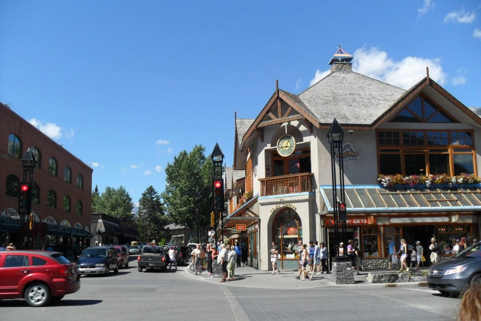 그리고 투어 중간중간에 마을도 종종 들렸는데 '반프'가 가장 유명한 곳 중의 하나다. 마을이 작진 않은데 건물이 크리스마스 타운처럼 아기자기하고 때 묻지 않은 마을 풍경이 인상적이다. 그야말로 슬로 시티다. 그리고 정말 마을을 돌아다니다 보면 다람쥐만큼이나 흔하게 사슴을 볼 수 있고 나도 돌아다니다가 수사슴과 마주쳤다. 그래서 투어가이드가 가까이 다가가면 갑자기 공격할 수 있다고 여행 초부터 얘기해 주었다.