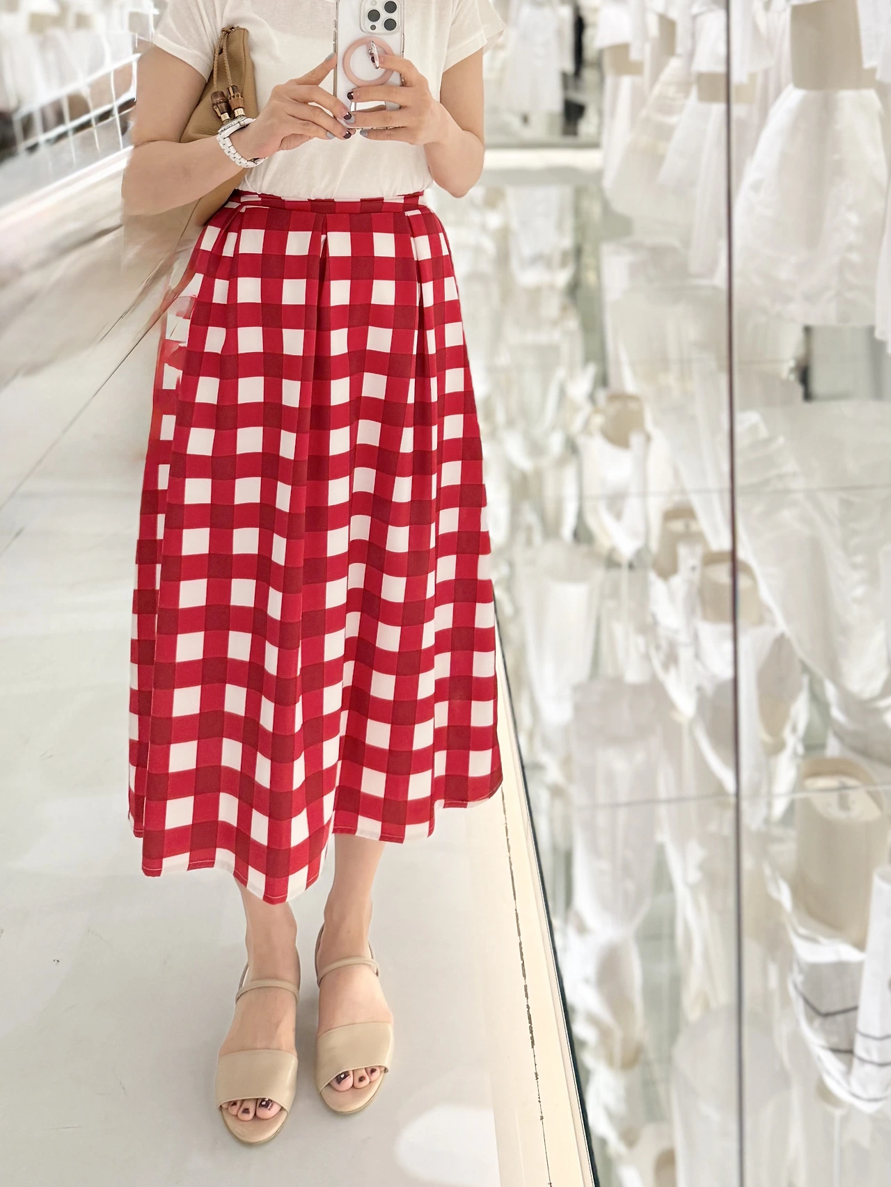 얼마 전 나는 빨간색 깅엄 체크 패턴의 맥시 스커트에 반해서 온라인 쇼핑몰을 헤매다 결국 판매처 한 곳을 알아냈는데 구매하려고 보니 파란색과 검은색 옵션이 더 있었다. 정말 원했던 것은 빨간색이었지만 파란색과 검은색도 예뻐 보여 다 사고 싶었다. 하지만 이제 이런 경우 나는 바로 구매하지 않고 잠시 시간을 가진다. 그렇게 일주일 후, 처음 느꼈던 그 강렬한 욕구가 잠잠해지나서야 이 스커트는 빨간색 하나만 구매하는 것이 맞다는 판단을 내렸다. 꽤 존재감이 강한 이 스커트는 다양한 컬러로 자주 입기에는 오히려 그 특별함이 반감된다.