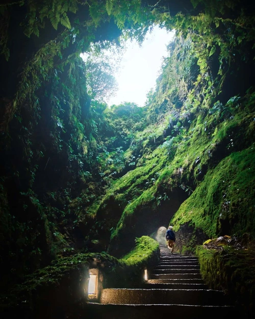 바로 화산 동굴은 자연의 신비 그 자체이다. 알가르 두 카르바우(Algar do Carvão) 동굴은 약 3,200년 전 화산 활동으로 생긴 용암 굴이다. 깊게 뚫린 수직 수로와 내부를 수놓은 석회암, 다양한 광물층이 어우러진다. 화산 동굴 안은 깊은 회색과 은은한 베이지, 석회암 층의 미묘한 톤 차로 구성된 자연의 팔레트였다. ‘이런 경관을 직접 보다니!’ 마음의 소리가 입밖으로 툭튀어 나왔다. 마치 자연이 신비로운 보물을 숨겨놓은 듯했다. 자연의 거대함 앞에서 인간이 한없이 작은 존재임을 새삼 느꼈다.