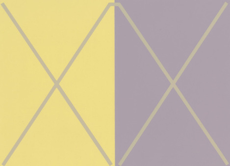 2가지 다른 바탕에 2가지 다른 색이 보이시나요? 그렇지만 여기에는 총 3가지의 색상이 있습니다. X자를 주목해봅시다. X자를 따라가다 보면, 위쪽 가운데에서 둘이 만나는 지점을 볼 수 있습니다. 위쪽과 아래쪽으로 연결된 X자는 결국 연결되어 있으므로 다르게 보이지만 같은 색이라는 것을 알 수 있습니다. 그렇지만 우리는 노란색 바탕 위의 X자 형상은 보라색처럼 보이고, 보라색 바탕 위의 X자 형상은 노란색처럼 보입니다. 이렇게 동일한 하나의 색이 다른 두 가지의 배경색에서 다르게 보입니다. 이 원리는 무엇일까요?