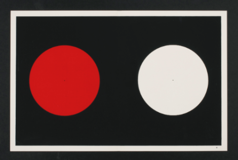 [이미지 3]를 통해 한 번 실험해볼까요. 왼편에 있는 빨간 원 중앙에 위치한 검은 점을 30초 동안 응시해봅시다. 그 후, 흰색 원 중심에 표시된 점에 초점을 맞춰봅시다. 무엇이 보이시나요? 밝은 청록색을 볼 수 있습니다. 원래 보이던 흰색 원이 더 이상 보이지 않습니다. 어떻게 된 일일까요? 우리가 보는 색상은 빨간색의 잔상이 있으며 동시에 대비됩니다. 이러한 현상을 방지하기 위하여, 붉은 피를 많이 보는 수술실에서 의사들은 흰색이 아닌 초록색 수술복을 입습니다.
