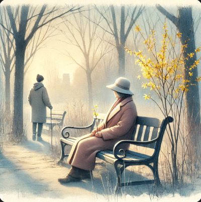 어제는 퇴근길에 우연히 벤치에 앉아 있는 아주머니를 보았다. 허리가 구부정한 모습으로 가만히 하늘을 올려다보던 아주머니는, 손끝에서 작은 꽃 한 송이를 흔들고 있었다. 아직 봄이 오려면 한참 남았는데, 그 손에는 노란 개나리가 들려 있었다. 어디서 꺾어 오셨을까. 나는 걸음을 멈춘 채 한참을 그 모습을 지켜보았다.