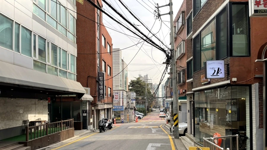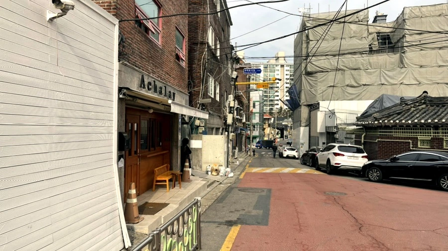 그 길을 따라 한 블럭 정도를 직진하면 ( 큰 블럭이 아니라 조금만 걸어가시면 돼요. 옆으로 나오는 길이 나올 때까지 직진~^^)