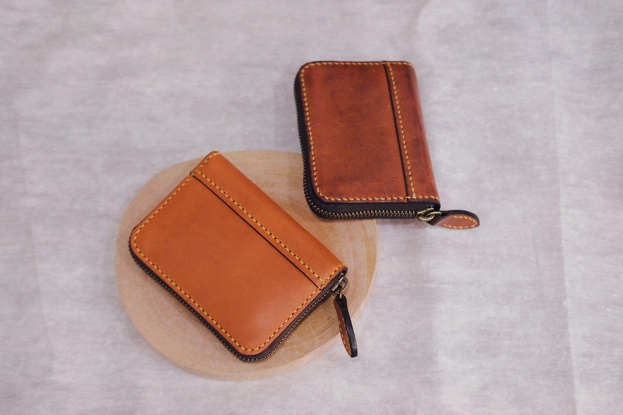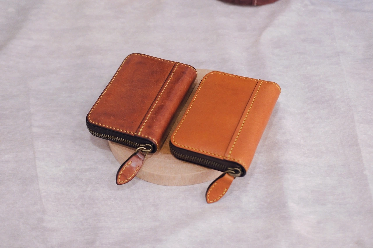 가죽은 이탈리아 베지터블 가죽인 미네르바를 메인으로 뷰테로라는 가죽을 사용했어요. 베지터블가죽의 여러 특징이 있겠지만 눈에 띄는 특징은 바로 태닝이지요. 일반적인 기성품에 쓰이는 가죽을 보통 크롬가죽이라 부르는데 크롬은 태닝이 되지 않거든요. 시간이 지날수록 색이 짙어지면서 자연스럽게 에이징되는 것은 베지터블의 중요한 특징이고 또 저를 포함해서 사람들이 베지터블 가죽 제품을 찾는 이유이기도 하답니다.