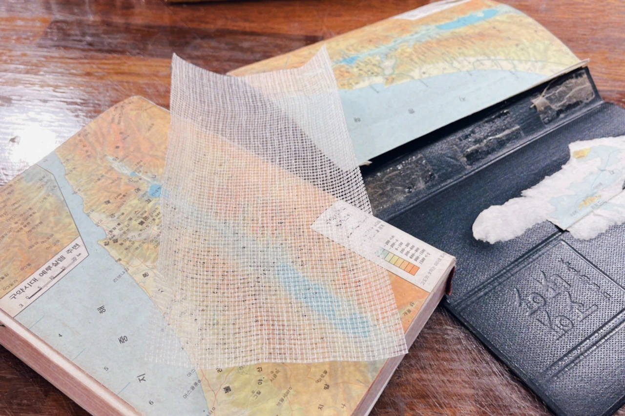 책을 많이 읽으셨는지 여기저기 파손의 흔적이 있어서 먼저 책을 보수하는 과정을 거쳤답니다. 한가지 알려드리면 보통 책이 찢어지면 스카치테이프를 많이 사용하시는데요. 책을 수리할 때는 일반적인 테이프를 사용하시면 안 돼요. 테이프가 오히려 종이를 상하게 해서 책이 더 망가진답니다. ㅠㅠ 그래서 책 수선용 중성 테이프를 사용하셔야해요. 당연히 왕십리 공방 하프타임 크래프트에서는 전용 테이프를 사용한답니다. ^^