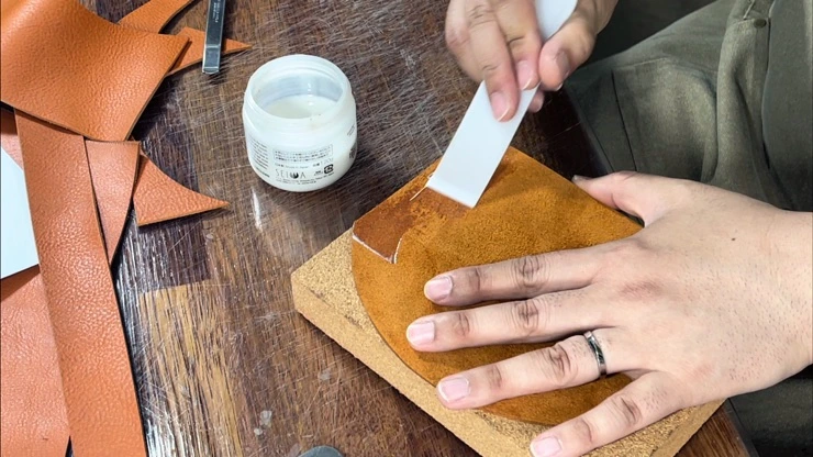 내피를 따로 넣을 것이 아니기 때문에 안쪽은 토코놀이라는 약품으로 마감해주었어요. 편하게 쓸 수 있도록 잠금장치는 자석을 사용했답니다. ^^