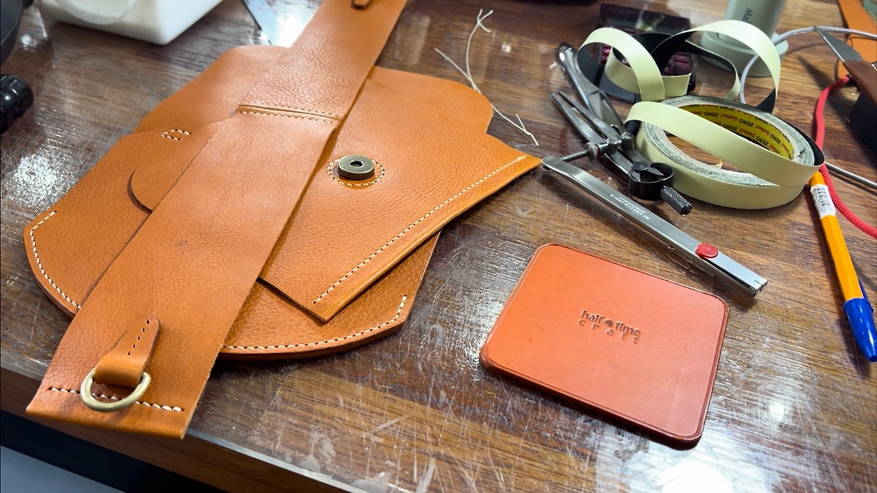 왕십리 가죽 공방 하프타임 크래프트에서 판매하는 가방 중에 파이핑이 들어간 깔끔한 스타일로 간단한 소품을 가볍게 넣어 다닐 수 있는 가방이 있어요. 오늘 포스팅은 그 가방을 만드는 과정을 간단히 소개하려 한답니다. ^^