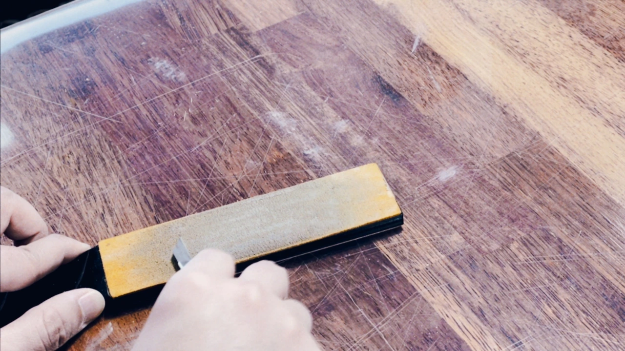 재단하기 전에 칼을 갈아주는 것은 선택이 아니라 필수에요. 날이 선 칼을 사용하는 것이 작업을 깔끔하게 할 수 있게 해주고 무엇보다 안전하게 작업할 수 있게 해준답니다.