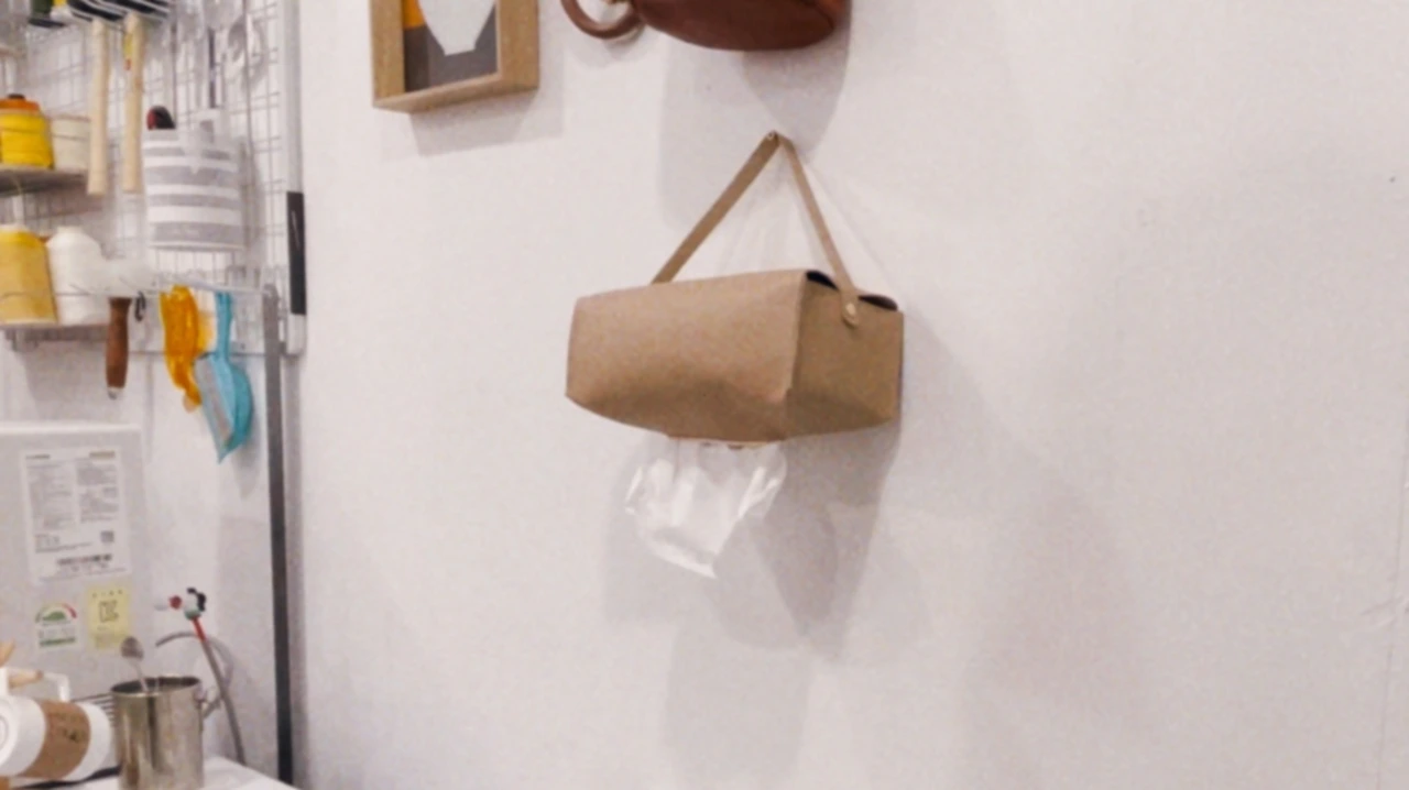 왕십리 취미 공간 하프타임 크래프트엔 세면대 윗쪽에 가죽으로 된 종이 타월 케이스가 걸려 있어요.