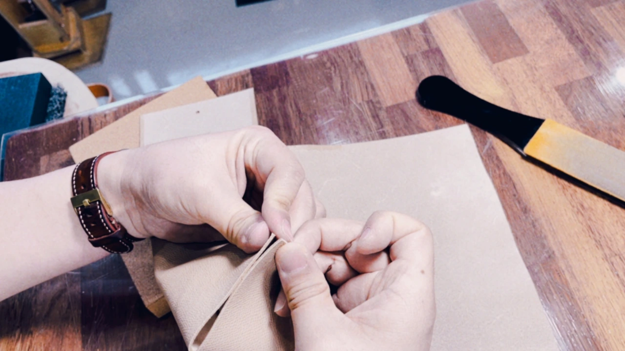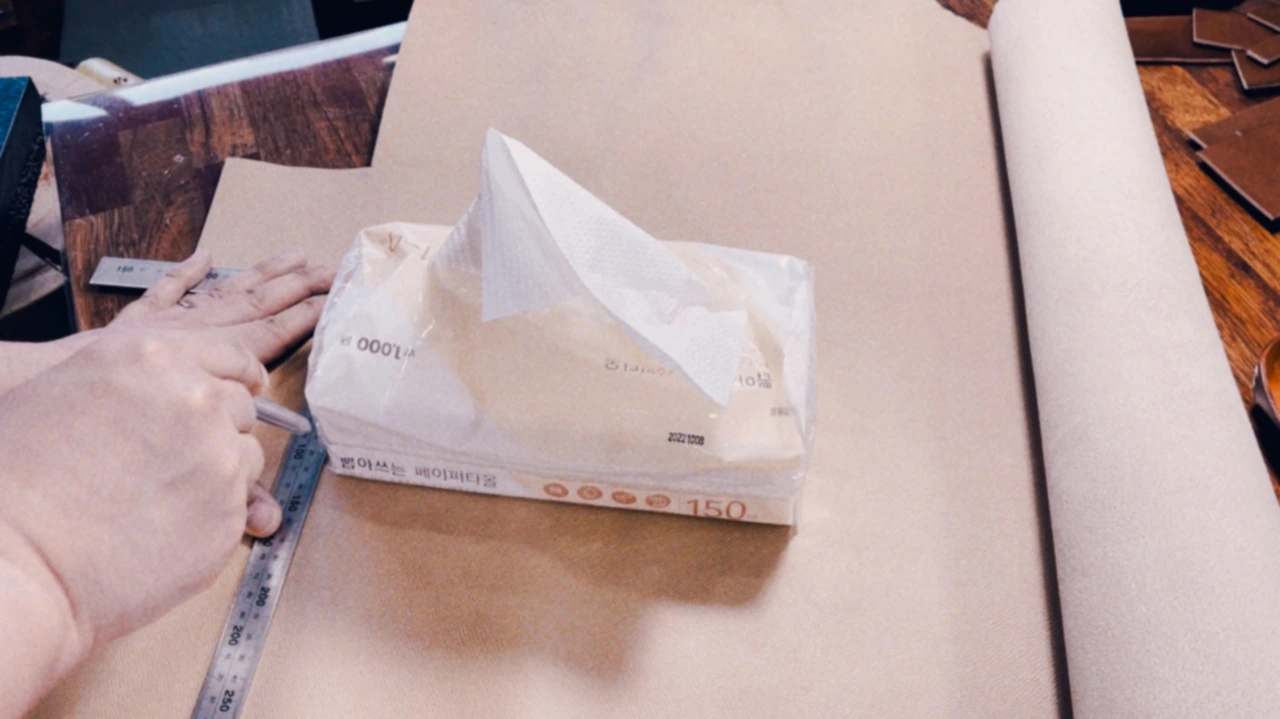 하프타임 크래프트 공방장은 베지터블 가죽으로 작업하는 것을 선호하지만 이번엔 크롬 가죽으로 작업했어요. 보통 크롬 가죽으로 제품을 만드는 경우엔 엣지코트 작업을 하지만 이번엔 공방에서 가볍게 쓰는 것이니 패스하기로 했지요. ^^