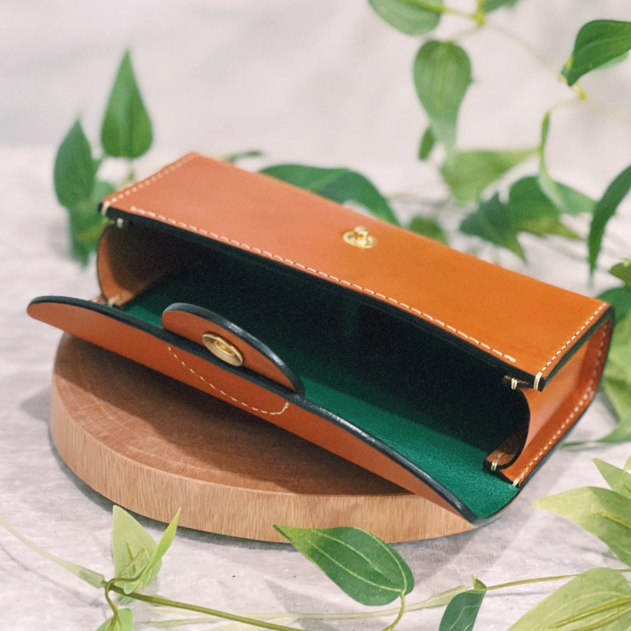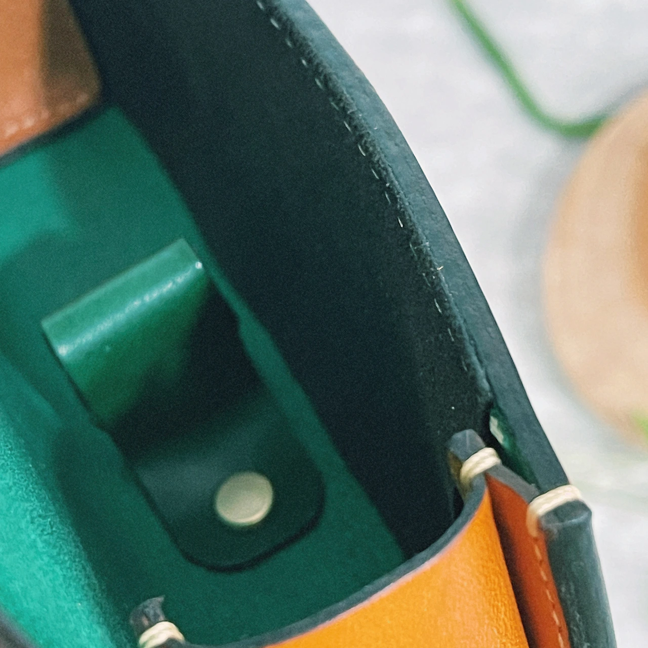 미네르바는 좋은 가죽이지만 부드러워 선글라스를 담기엔 조금 아쉬운 부분이 있어요. 그래서 안쪽에 하드 타임의 가죽 뷰테로의 스플리트 가죽을 사용했어요. 스플리트 가죽은 보통 폐기되는데, 이렇게 사용하니 업사이클링되어 환경에도 살짝 도움을 주는 효과도 있게 되었답니다. ^^