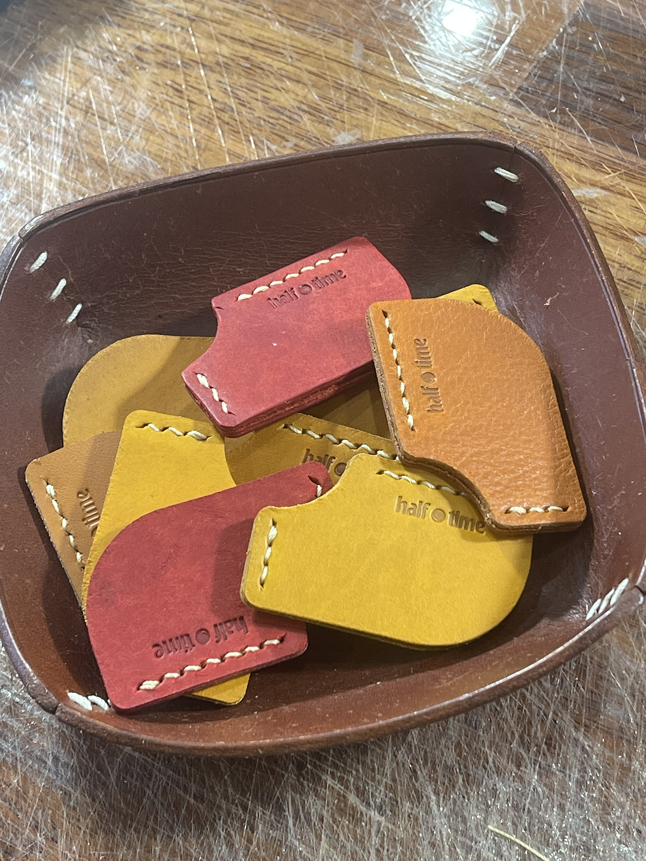 왕십리 공방 하프타임 크래프트에서 키 큰 공방장이 작업할 때도 크게 다르지 않아서 애매한 크기의 자투리 가죽이 많이 있답니다. 이런 자투라 가죽이 아깝기도 하고 쓰레기를 줄이는 의미로 키 큰 공방장은 시간이 생길 때마다 자투리 가죽을 사용해서 작은 소품을 만든답니다.