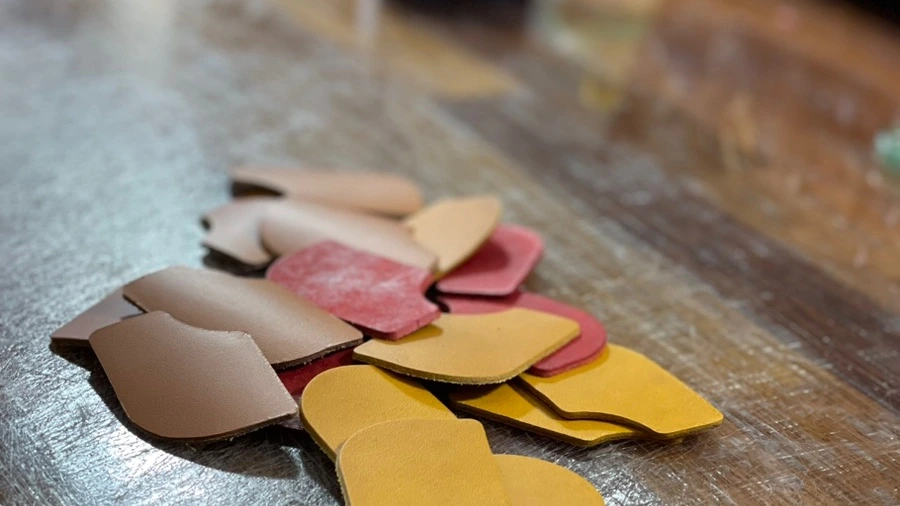 가죽 공예를 하면 의도하지 않게 애매한 크기의 가죽이 나올 때가 있어요. 아무리 패턴을 신경 써서 만들고 제단을 고심해서 해도 제품에 사용하긴 어려운 크기의 가죽이 나오는 것을 피하기는 어렵답니다. 보통 이런 가죽을 자투리 가죽이라 불러요.
