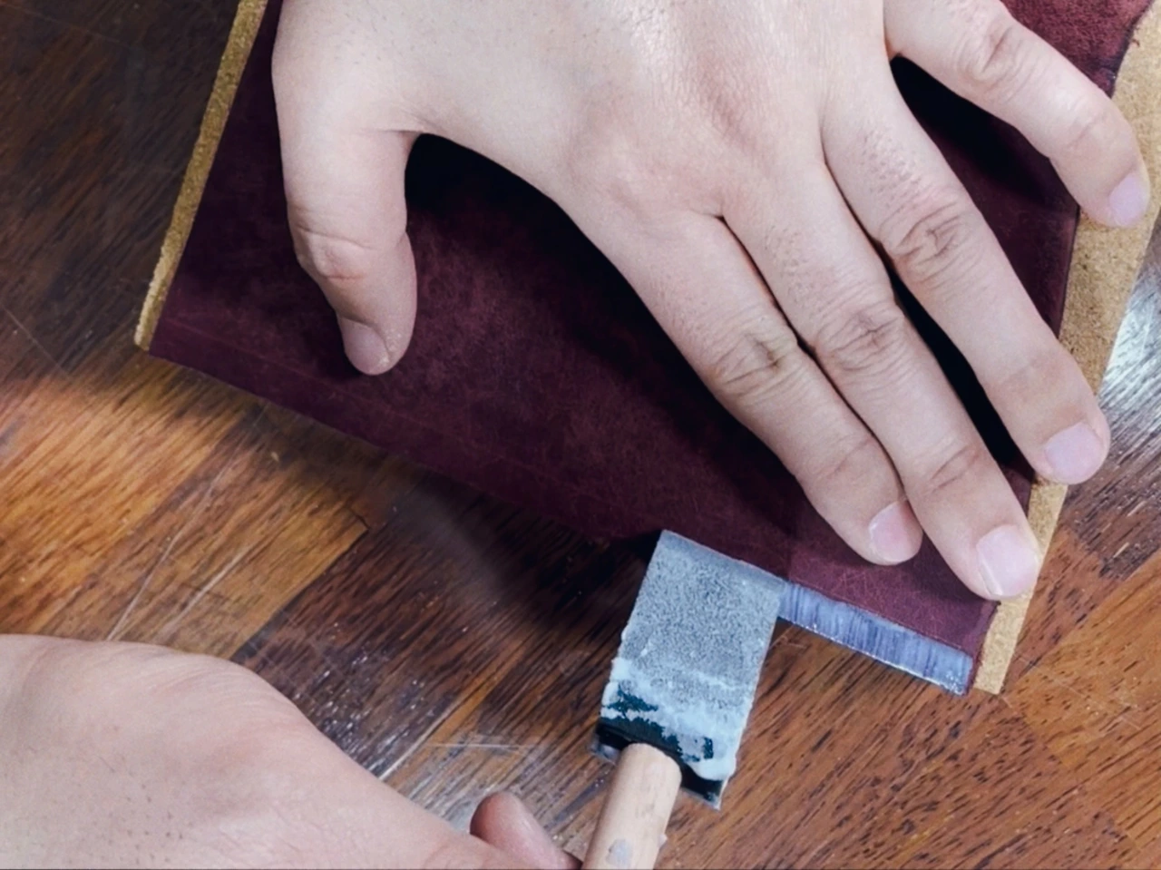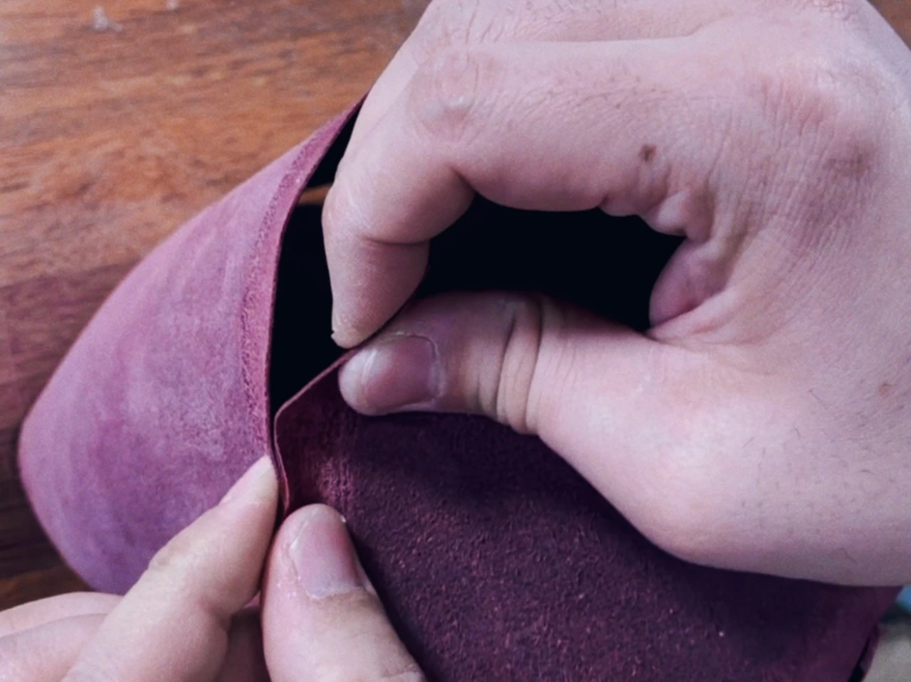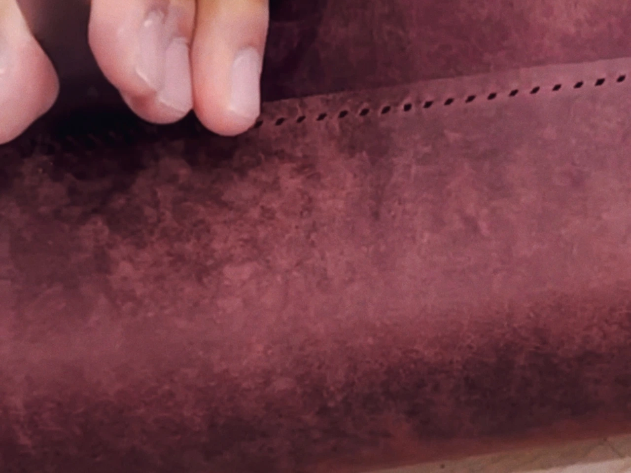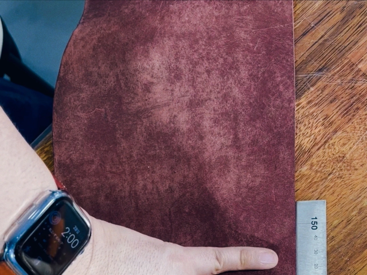 사용한 가죽은 푸에블로라는 이탈리아 가죽이에요. 기본적으로 미네르바와 같은 가죽인데 마지막에 큰 구슬을 사용해서 표면에 작은 스크레치를 일부러 만든 가죽으로 오묘한 색감이 아주 매력적인 가죽이랍니다. 색상은 다른 색상도 좋았겠지만 적당한 크기의 가죽이 버건디 계열의 색상뿐이라 그냥 그걸 사용하기로 했어요.