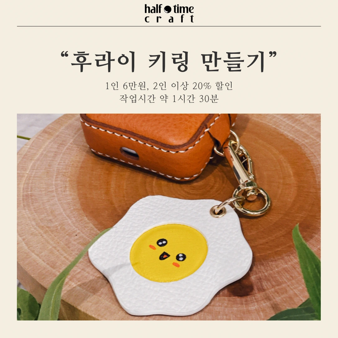 다음에 소개할 왕십리 색다른 데이트 코스로는 후라이 키링 만들기 수업이에요. 너무너무 귀여운 후라이 키링에 네임펜으로 다양한 표정을 넣을 수 있는 아주 특별한 키링이랍니다. 키 큰 공방장이 화이트데이 이벤트로 추천할 만한 비주얼이지요? ^^ 서로의 키링에 상대방을 대표하는 표정을 그려서 주어도 참 좋겠네요.