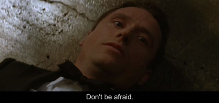 <배트맨 비긴즈>에서는 아버지인 토마스 웨인의 마지막 대사가 '브루스'에게로 향합니다. 두려워하지 말라고 하죠.
