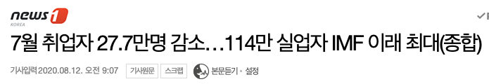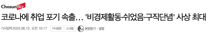 튼튼한 중소/중견 기업이 많아져야 취업률이 회복될 수 있는데, 코로나는 작은 기업일수록 더 지독하게 고통을 주고 있으니. 코로나가 운이 좋게 종식된다고 하더라도 피해 회복에 짧아도 2년은 걸릴 것이다.