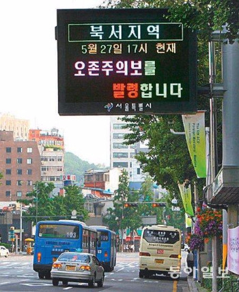 햇빛이 강하게 내리는 오후, 차량 통행량이 많은 곳은 오존 농도가 급격히 상승한다.