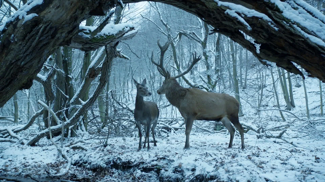 영화 <우리는 같은 꿈을 꾼다>의 첫 장면은 하얀 눈에 뒤덮인 설산에 등장한 두 마리의 사슴을 보여주며 시작된다. 나무와 눈 밖에 없는 하얀 공간에서 수사슴이 암사슴을 보살피고 있다. 서로의 숨이 교차하고 서로를 바라보는 눈빛이 겹친다. 누가 보더라도 부부(?) 사슴이 분명해 보인다. 후에 나오지만 이 장면은 두 주인공인 마리어와 엔드레가 꾸는 꿈의 장면이다. 그리고 이 장면은 두 주인공이 가진 유일한 공통점이자 두 사람을 엮어주는 매개체이다.