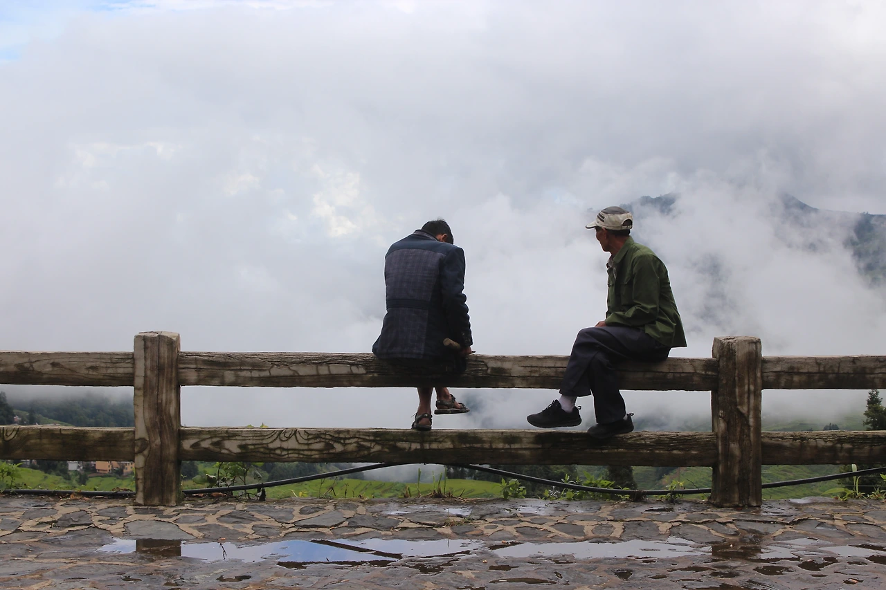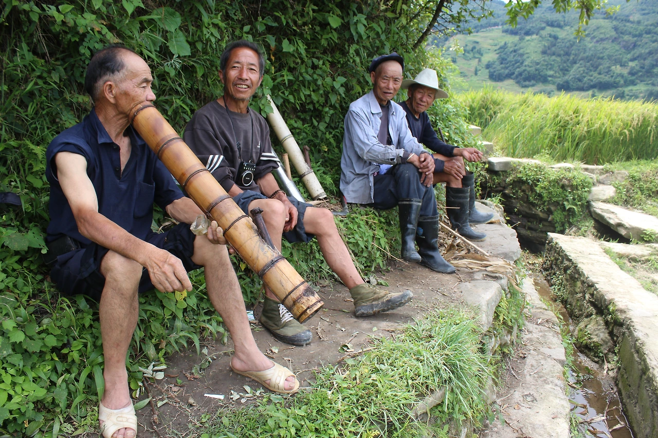 그렇게 열심히 한 발 한 발 내딛으며 계단식 논을 올라가는데 논두렁의 좁은 길이 아래로 푹푹 꺼지기 시작한다. 길이라 생각하고 걸었는데 그 끝은 다른 길로 연결되지 않아 갔던 길을 되돌아오기를 반복. 결국 난 좁고 가파른 계단식 논과 논 사이에 갇혀버리고 말았다. 신발은 이미 진흑 투성이고 옷은 땀으로 흥건하다. 그때 가까운 지척에 농사를 짓고 계시던 할아버지 몇 분이 보여 냉큼 다가가 말을 걸었다. 저 멀리 보이는 마을을 가리키며 저곳을 갈려면 어느 길로 가야 하는지 눈빛과 몸짓으로 물었다. 내 손가락이 가리키던 마을을 바라보던 할아버지 한 분이 마치 내 흉내라도 내듯이 당신의 손으로 그 마을을 가리킨다. 그리고는 저곳으로 가려면 네가 가리키고 있는 저곳으로 가면 된다고 할아버지도 나에게 눈빛과 몸짓으로 말한다.