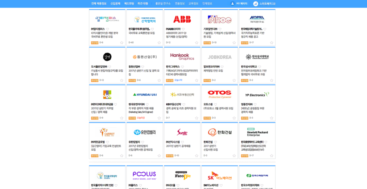 대학교 4학년 2학기가 되어 취업을 준비한다고 하면 가장 먼저 하는 일이 채용 공고에 대한 정보를 얻는 일입니다. 사람마다 차이가 있을 수 있지만 대부분의 취업준비 '채용 공고 확인>서류 준비>인적성 준비>면접 준비'의 단계로 구성됩니다. 채용 공고를 확인할 수 있는 채널은 다양하지만 크게 1)채용포털(잡코리아, 사람인 등), 2)취업카페(독취사, 스펙업 등), 3)학교 내 채용 공고(커리어센터, 취업지원실 등)로 압축됩니다. 문제는 이들 채널을 통해 얻는 채용 공고 정보가 너무 방대하거나 너무 부족하다는 점입니다. 먼저 학교 내 채용 공고의 경우 채용 공고의 양과 질이 학교에 따른 편차가 매우 심각합니다. 이유는 채용하는 기업에서 소수의 우수한 학생들을 대상으로만 채용을 원하는 경우 특정 학교에만 채용 공고를 게재하기 때문입니다. 따라서 대다수의 학생들은 A라는 기업이 채용을 하는지 조차 모르고 취업 시기를 보내게 됩니다.