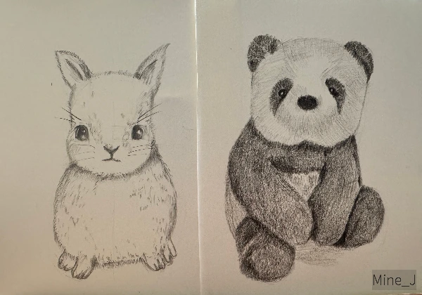 이번엔 판다와 토끼를 그려보았다. 판다 인형을 그리면서 에버랜드 판다 월드에 갔었던 날을 떠올렸다. 나는 러바오를 좋아하는데 판다 아카데미에서 설명을 듣다가 등 뒤에서 출근을 위해 들어오는 러바오를 처음 본 순간 또 반해버렸다. 나는 마지막까지 바오패밀리 앞을 떠나지 못하고 그들을 눈에 담았다.