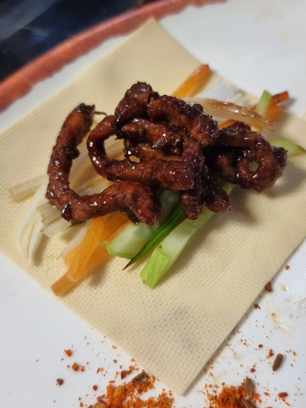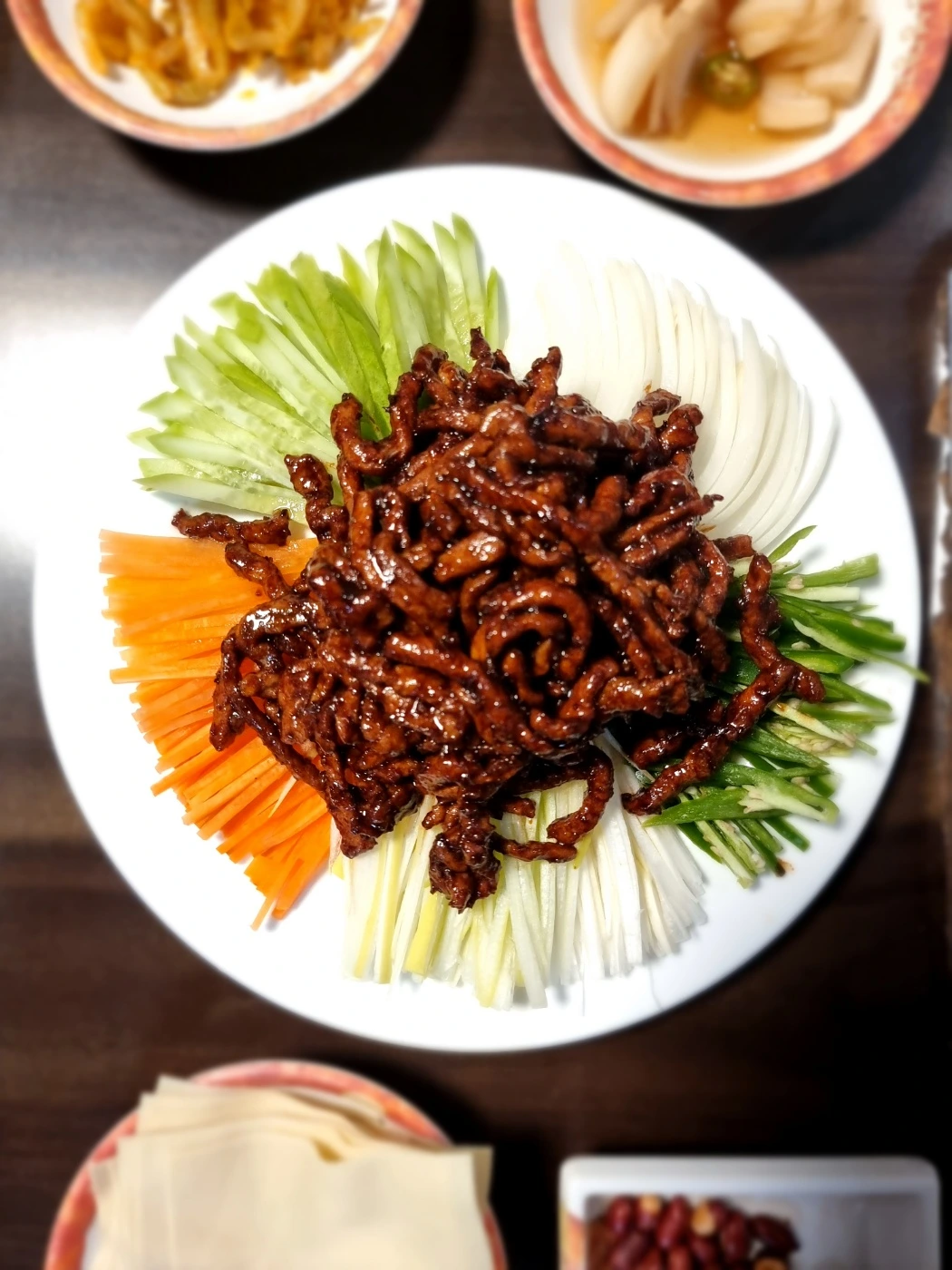 처음 이 요리를 먹었을 때, 감탄이 절로 나왔다. 익숙한 듯하면서도 전혀 새로운 맛이었다. 쌈처럼 싸서 먹는 방식이지만, 그 안에는 중국식 요리의 정수가 담겨 있었다. 짠맛과 단맛이 미묘하게 조화를 이루고, 채소의 신선함이 춘장의 진한 풍미를 부드럽게 감싸 안았다. 단백질이 풍부한 건두부 덕분에 건강하게 배를 채울 수 있다는 점도 매력적이었다.
