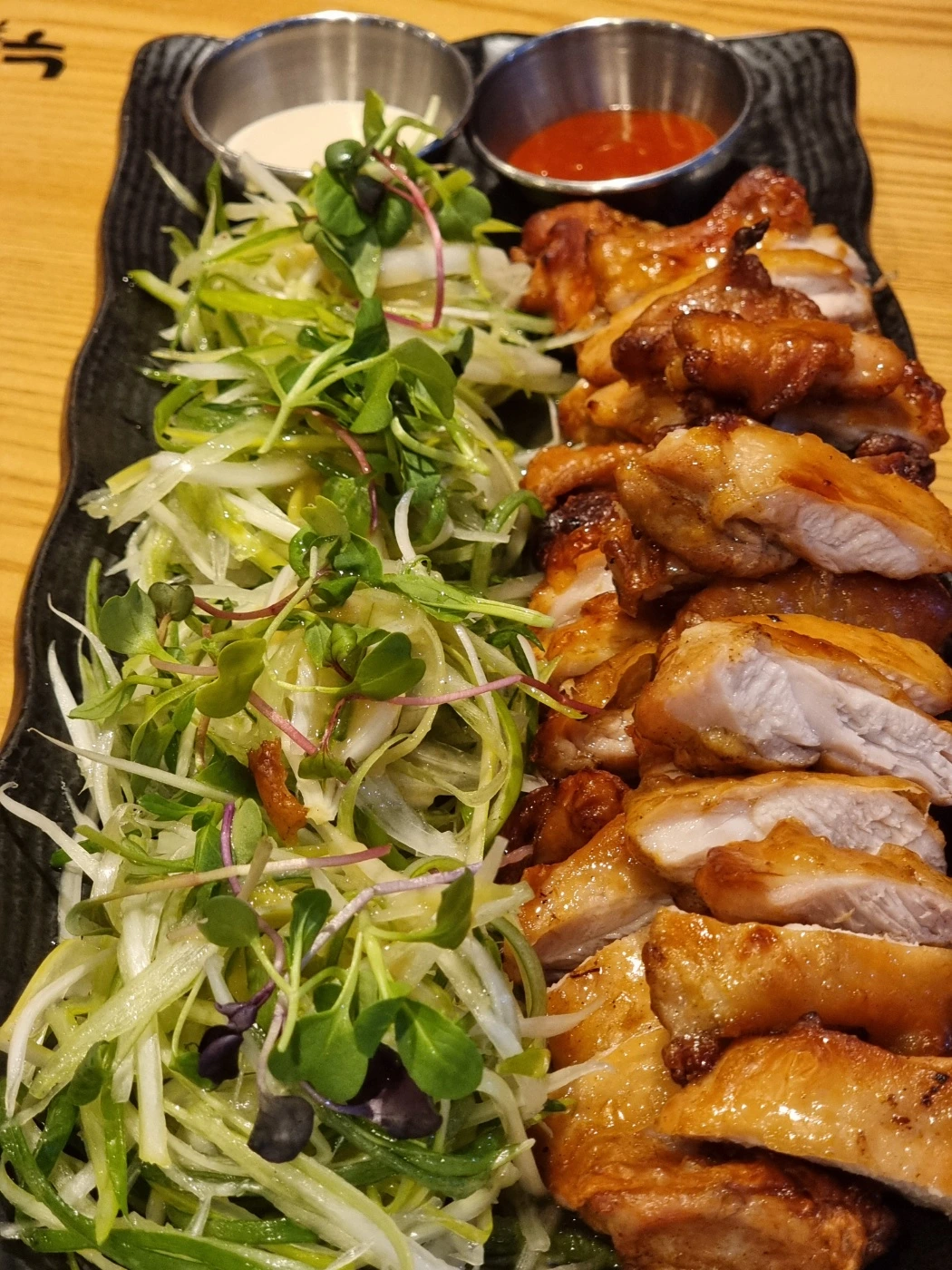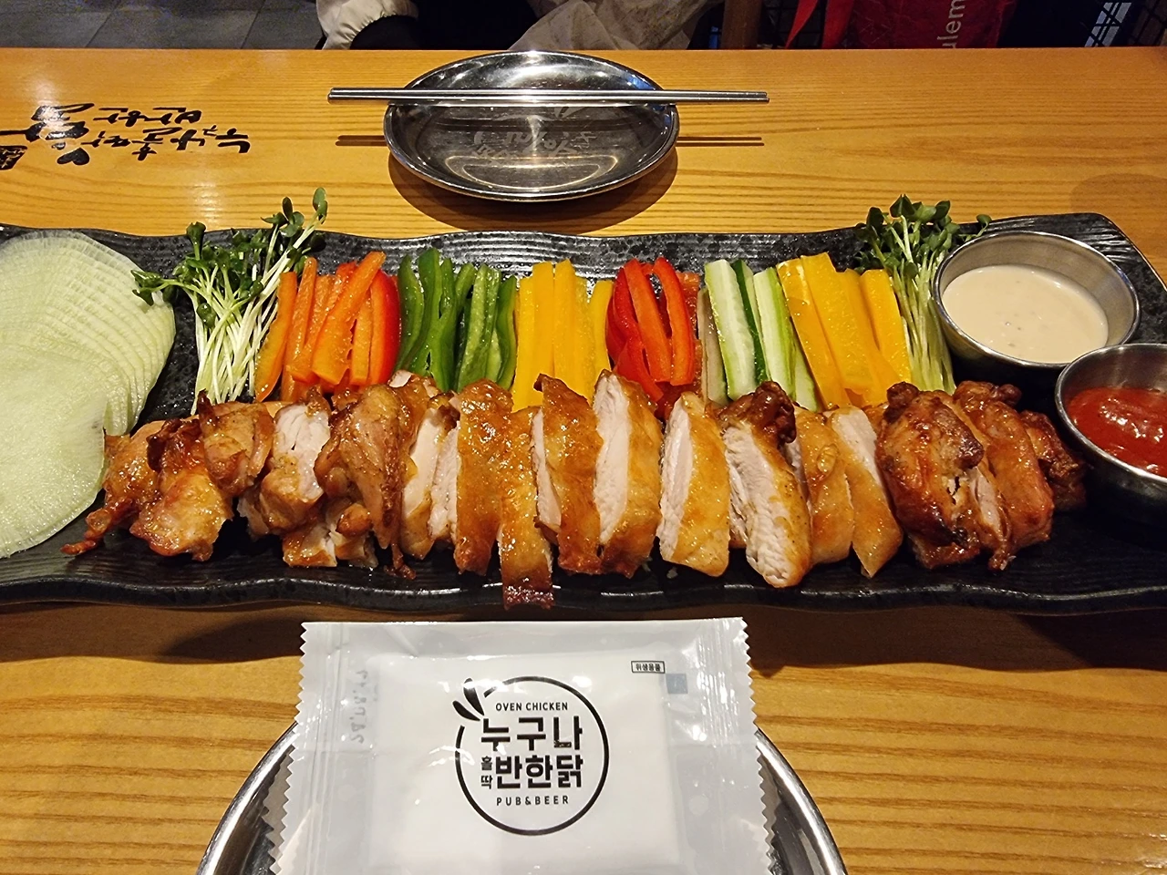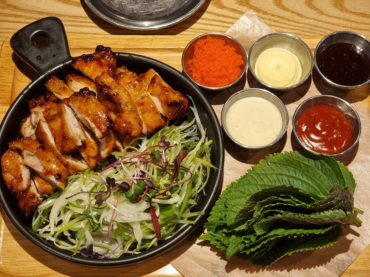 후레쉬 쌈닭은 튀김옷 없이 오븐에 구워져 기름기가 쫙 빠진다. 그러면서도 닭고기 특유의 촉촉함은 유지되며, 겉바속촉(겉은 바삭하고 속은 촉촉한) 식감이 살아있다. 하지만 이 메뉴의 진짜 매력은 닭고기만이 아니다.