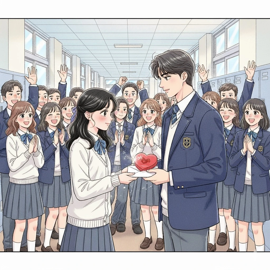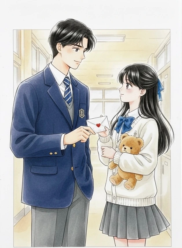 • 공개 고백, 학원 복도, 곰인형과 함께