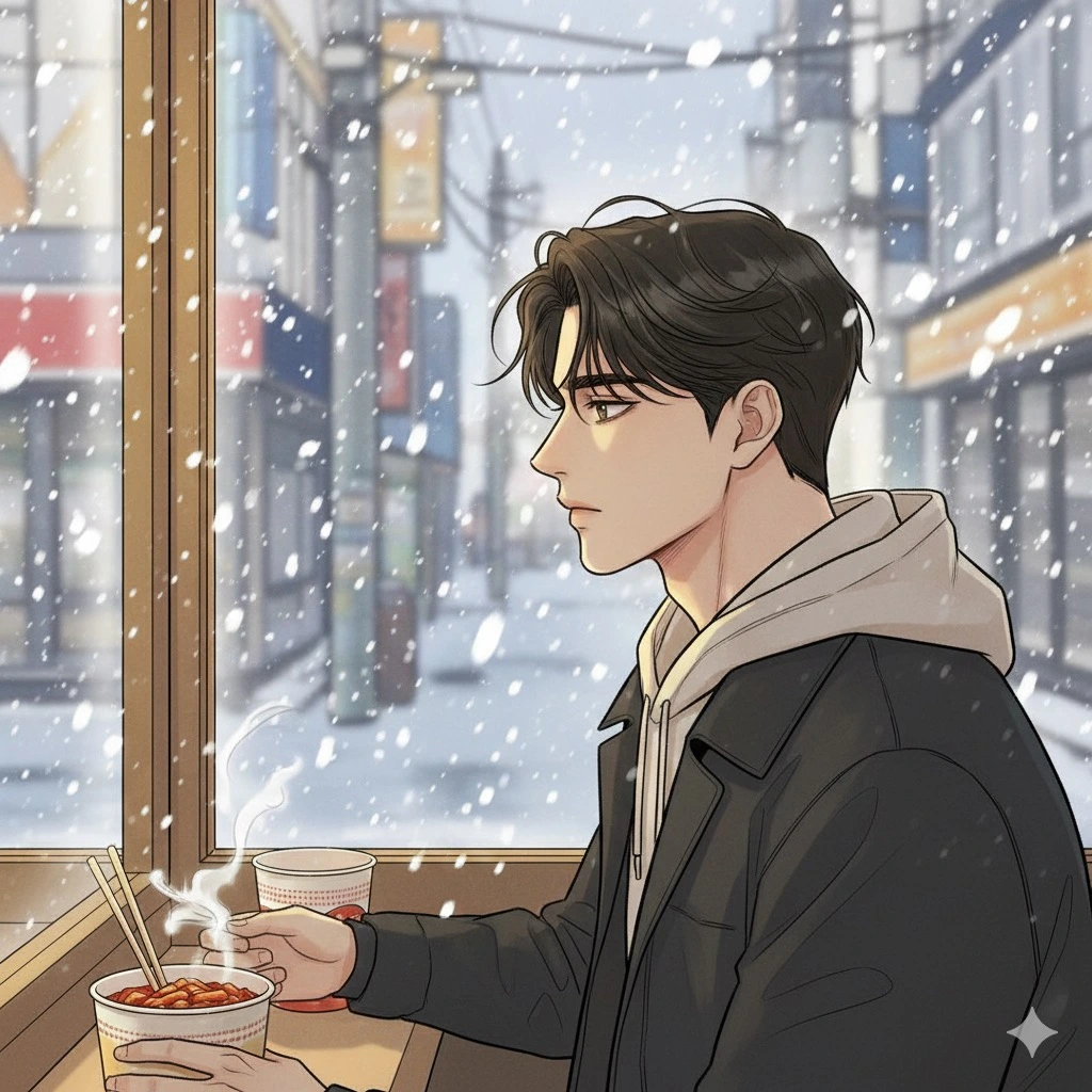 눈이 내리는 저녁, 바깥에서 아이가 눈싸움하는 걸 보다 보니 시상이 스르르 떠올랐어요.