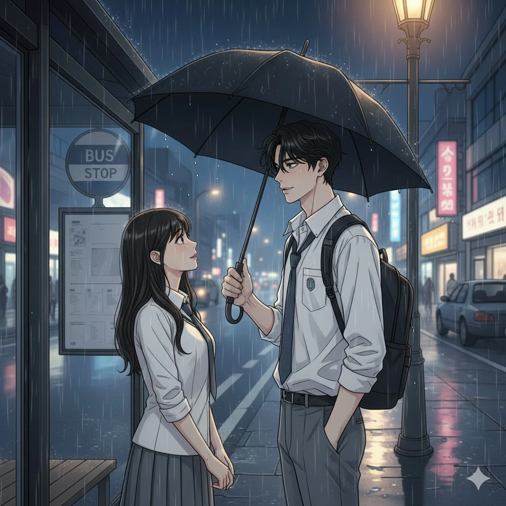 우산 아래 아주 좁은 공간에 갇힌 두 사람의 체온.