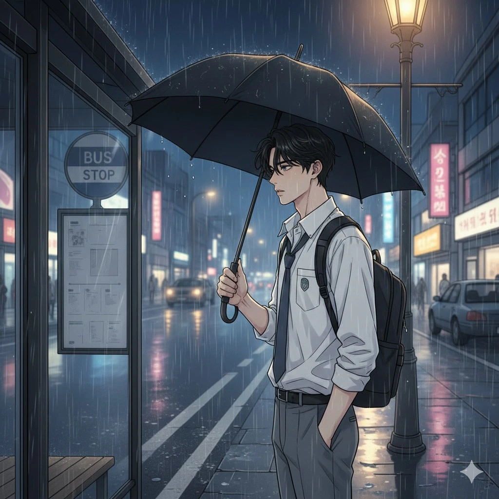 교복 치맛자락이 다 젖은 줄도 모르고