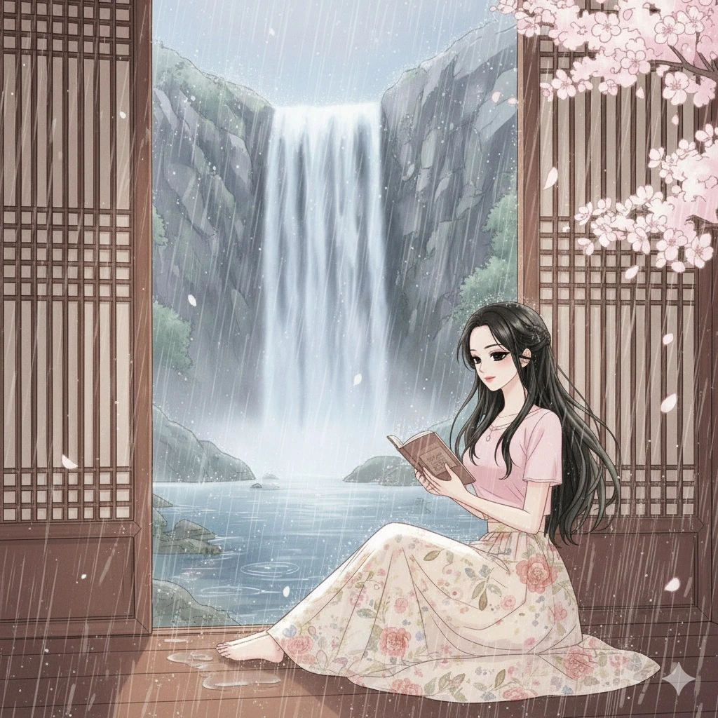 폭포 소리와 나무의 결 사이,