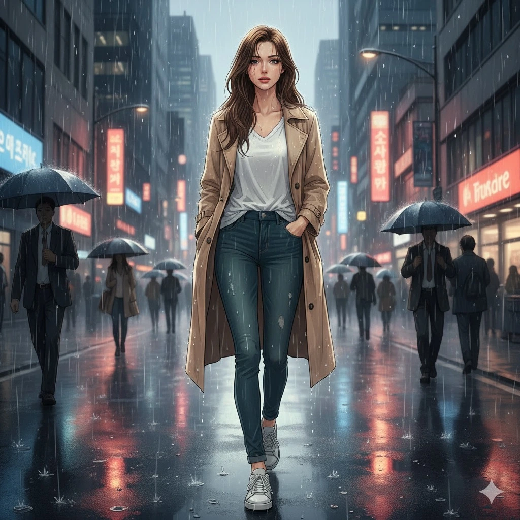 모두가 피하던 그 빗속으로 걸어 들어갔다.