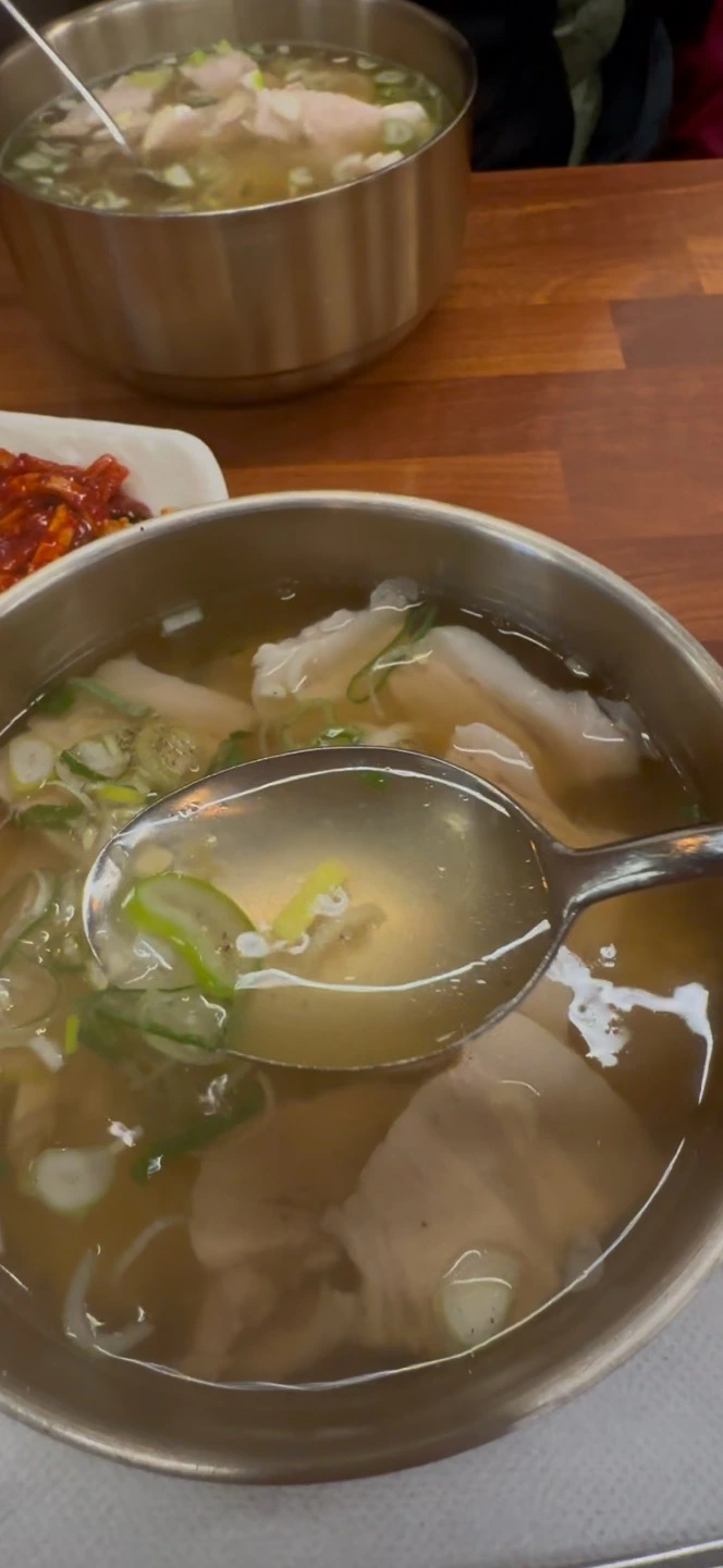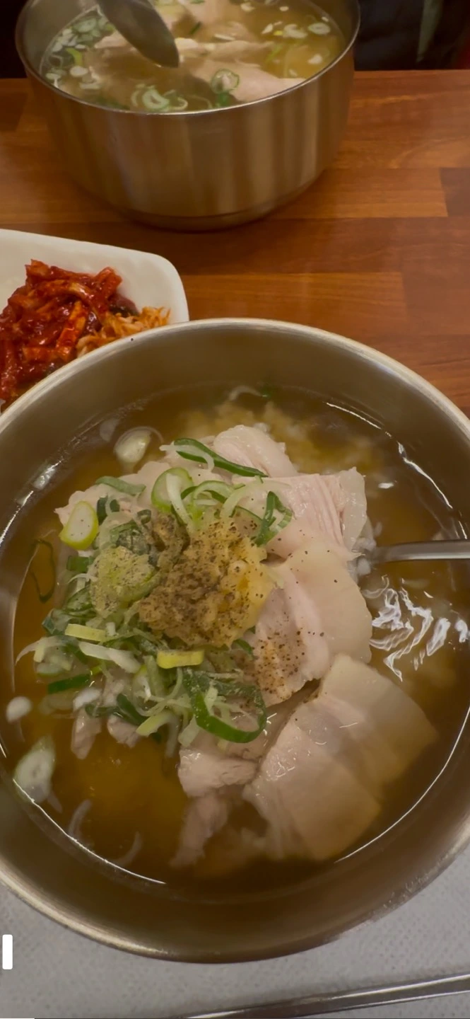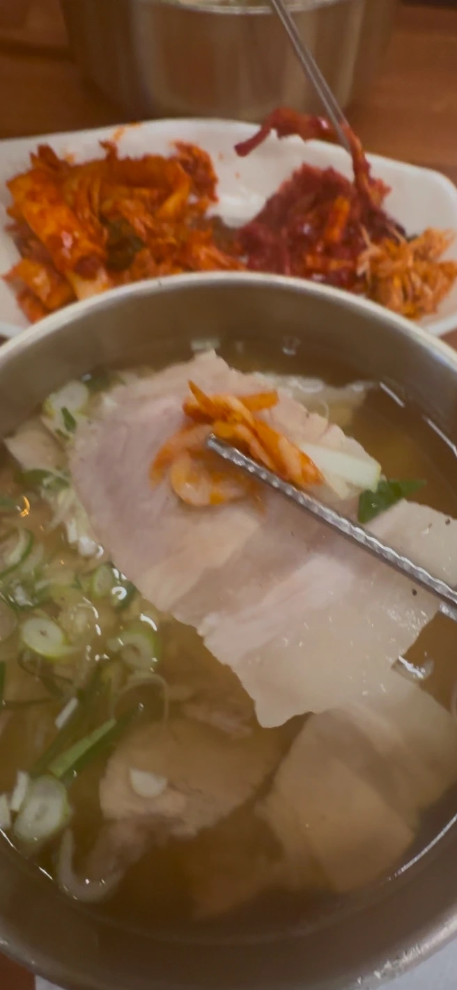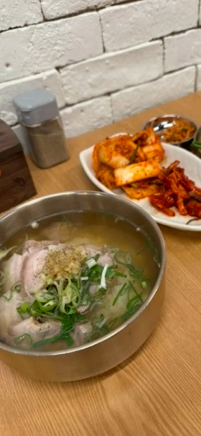 경상도에서 전통적으로 내려오는 돼지국밥 문화는 처음 접했지만, 따뜻한 국물이 목을 타고 넘어가면서 그 깊은 맛에 빠져들었다. 국물은 맑고, 은은한 한방 향이 배어 있었으며, 잡내 없이 부드러운 돼지고기가 고명처럼 올려져 있었다. 그릇 한가득 담긴 정성이 몸을 감싸는 느낌이었다.