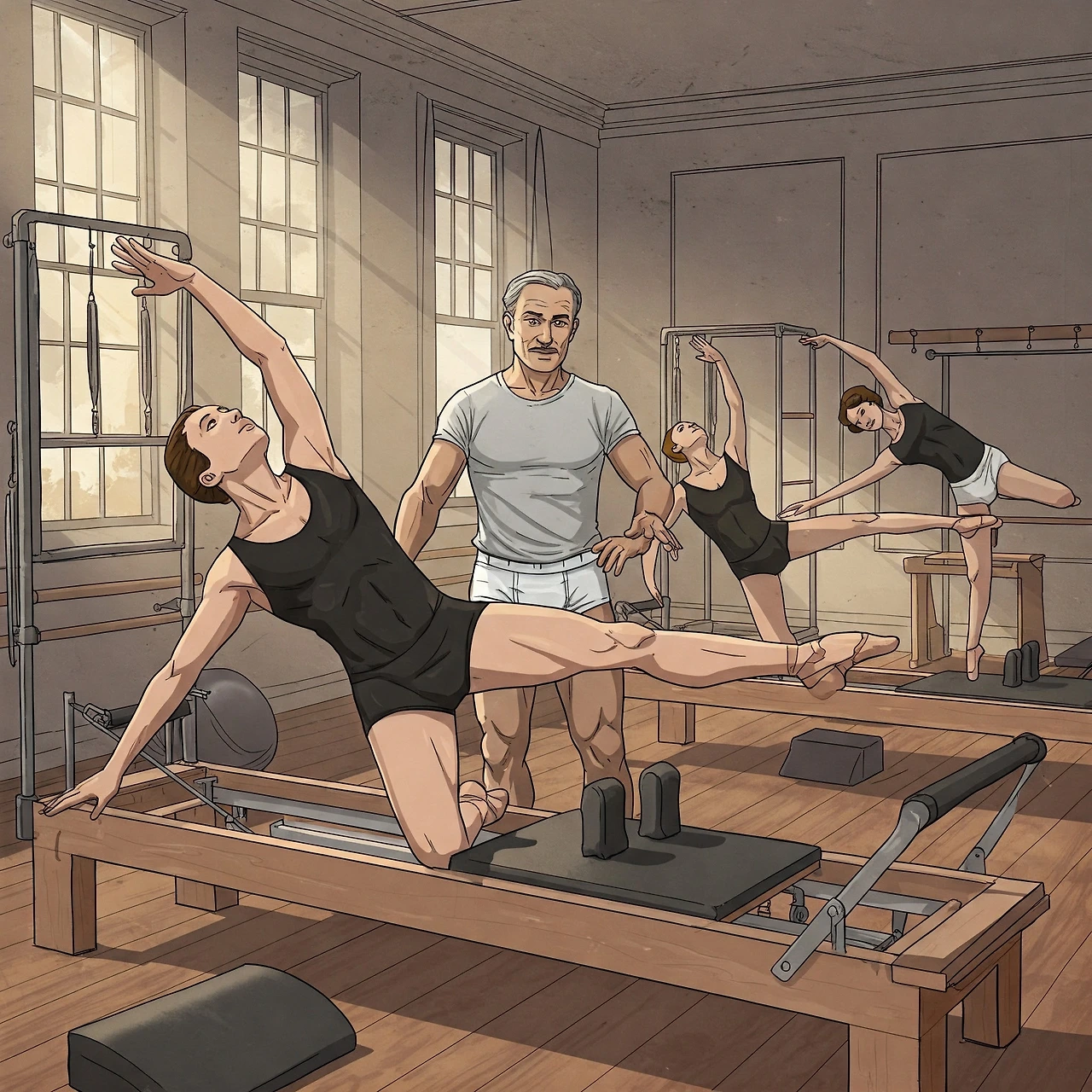 그의 스튜디오는 딜랐다. 소음도, 땀 냄새도, 고함도 없었다. 고요함 속에서 조용한 지시, 그리고 기구. 그는 캐딜락, 리포머, 배럴, 체어, 스파인 코렉터 등을 직접 만들었다. 전부 자신의 아이디어로 만든 기구였다.