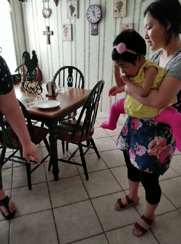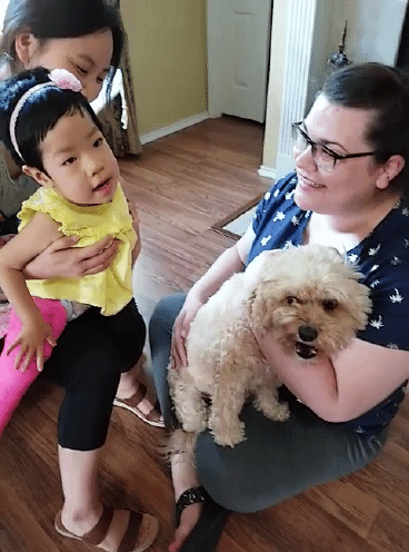 개를 만져보고 먹이를 던져주는 다나. 동물을 좋아하지않는 나와는 달리, 다나는 동물을 사랑하는 사람이 되길 바란다. 처음치고 무서워하지 않고 잘했어!