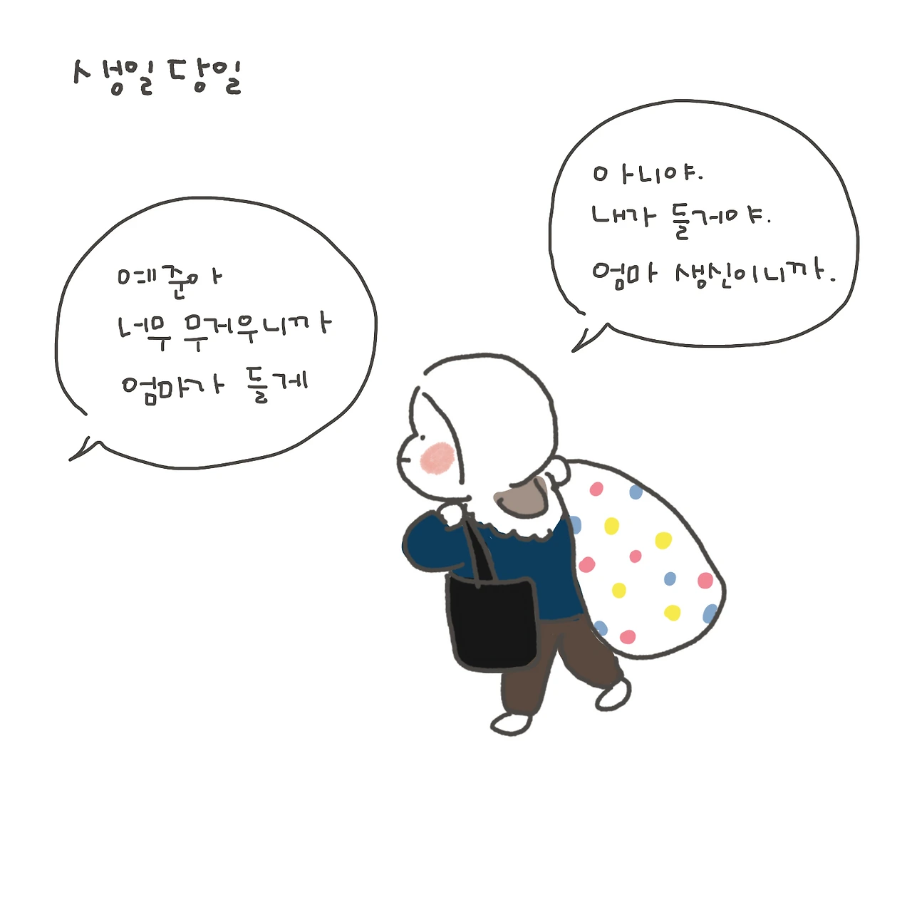 잠들 때까지 둘째 녀석의 “엄마 생신이니까.” 는 계속되었다.