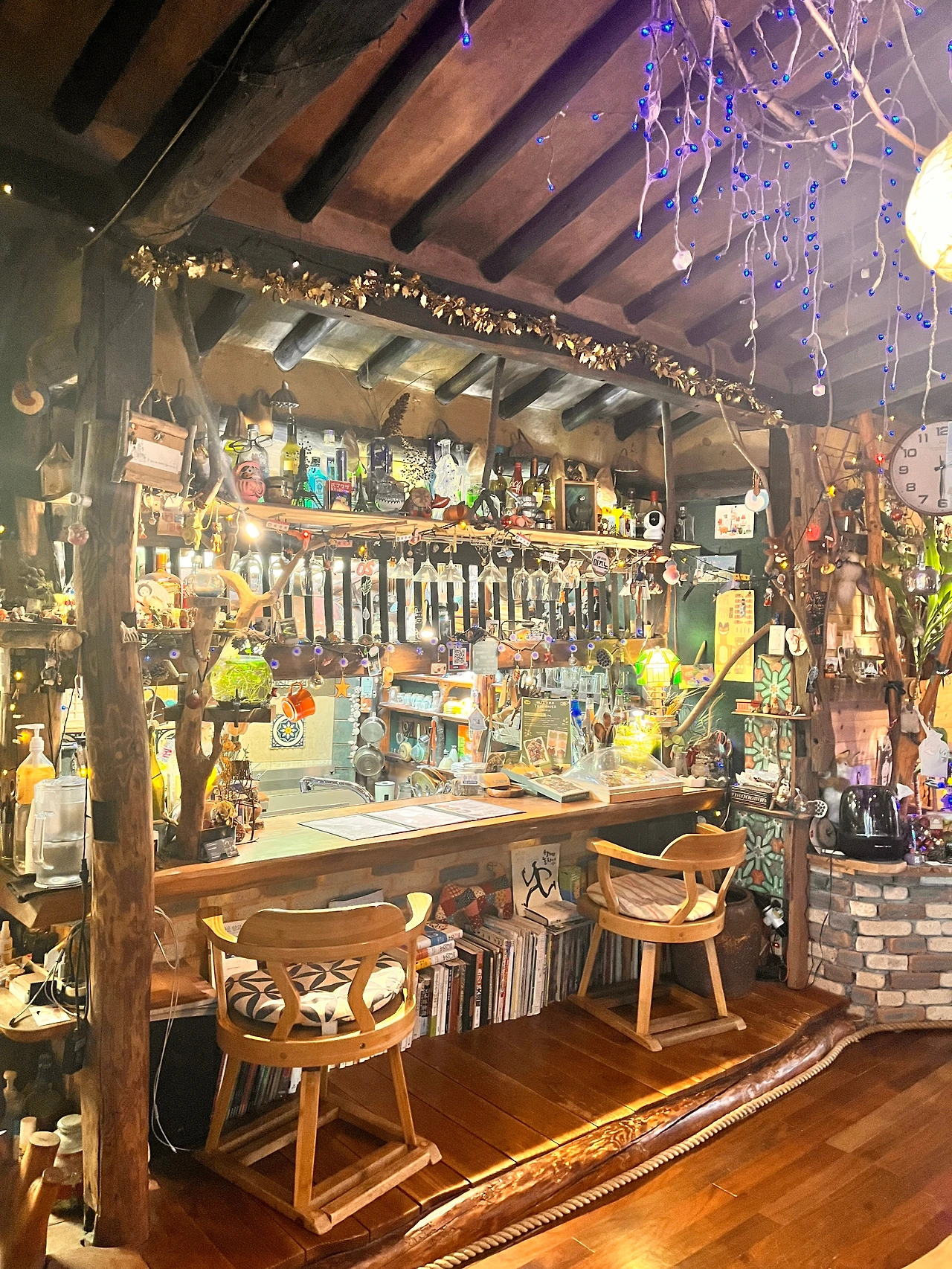 문을 열고 들어서니 장식이 엄청나게 많은 바테이블이 보인다.