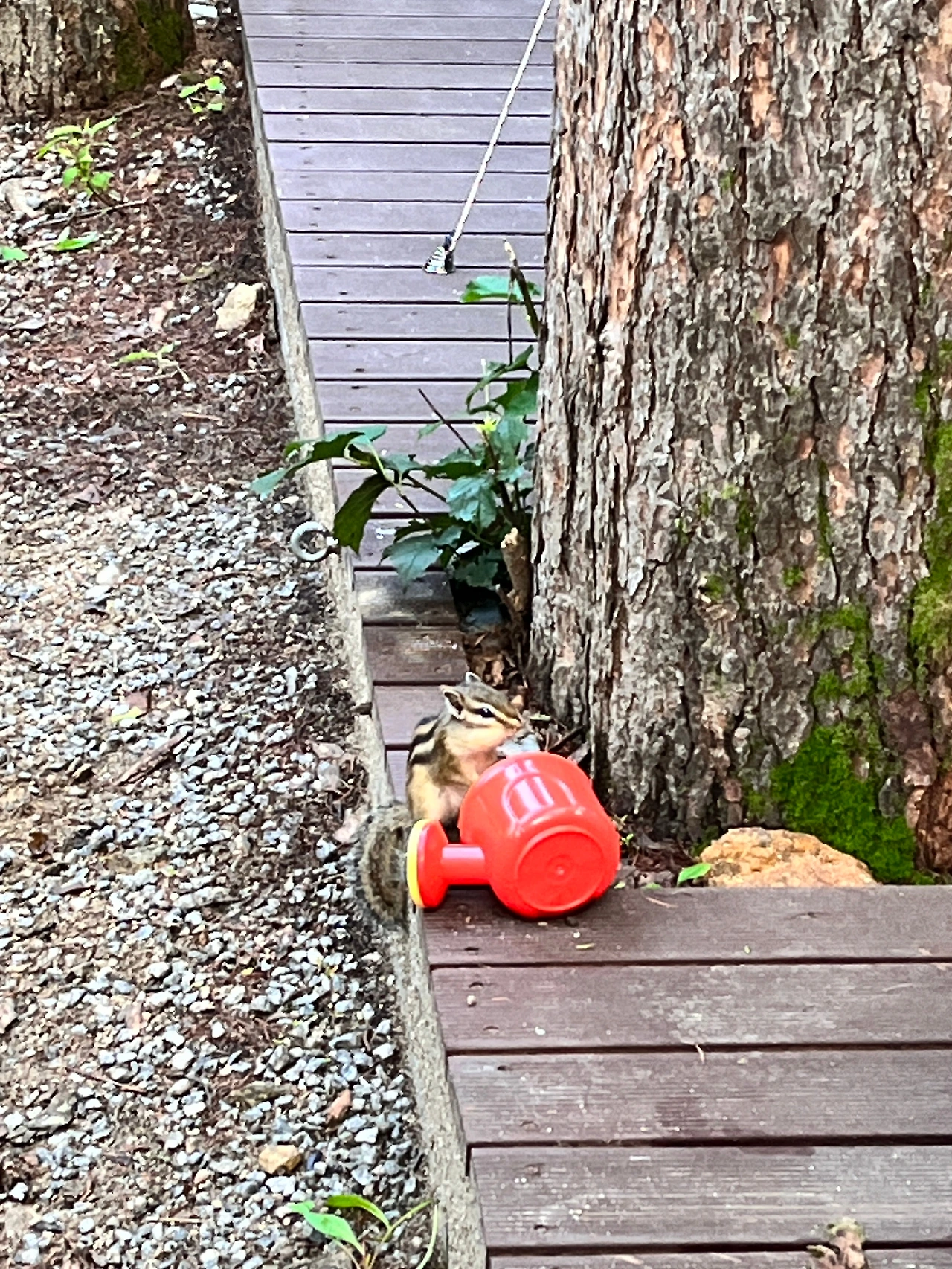밥을 먹고 있으니 다람쥐가 왔다 갔다 해서 첫째가 통에 쌀을 담아주었더니 아예 머리를 집어넣고 먹었다.