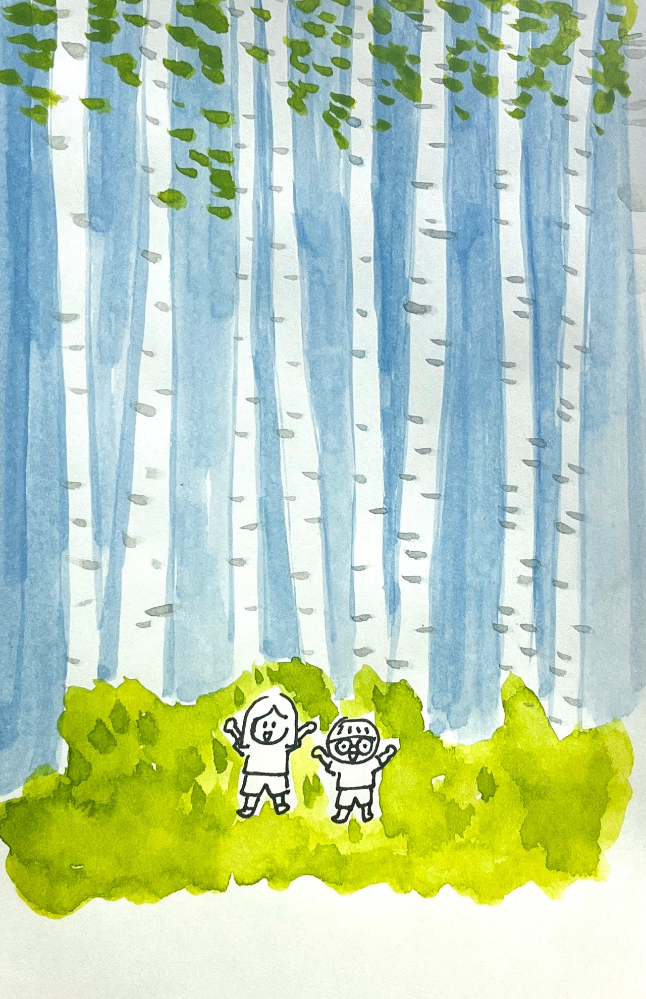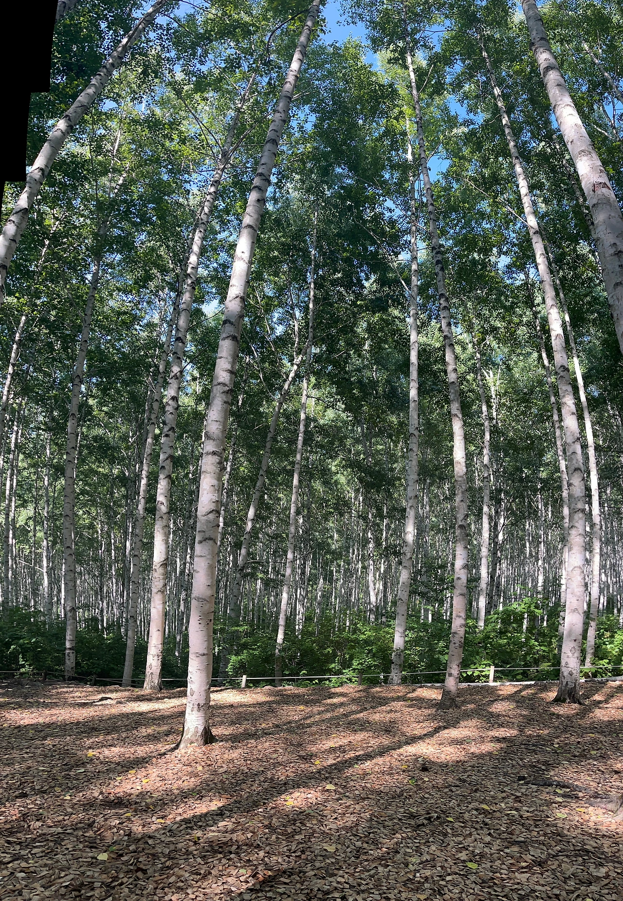 빽빽한 자작나무 사이로 보이는 하늘과 연두색 나뭇잎이 싱그럽다.